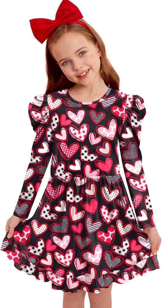 Girl's Christmas long sleeve dress brings festive charm to her cool-weather wardrobe. Great holiday Christmas top perfects for upcoming Christmas parties and holiday family portrait photos!