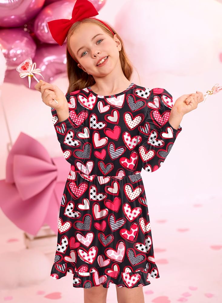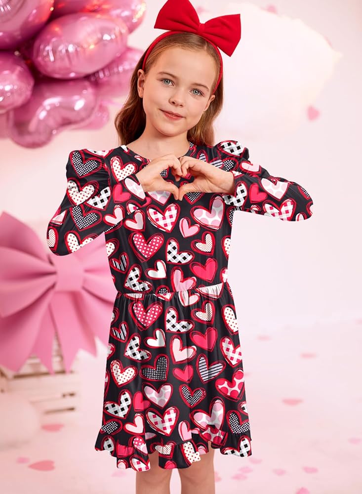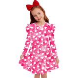 This Christmas ruffle shoulder dress featuring long sleeve and simply crewneck designs, adds a fun pop to your kid's Christmas wearing.