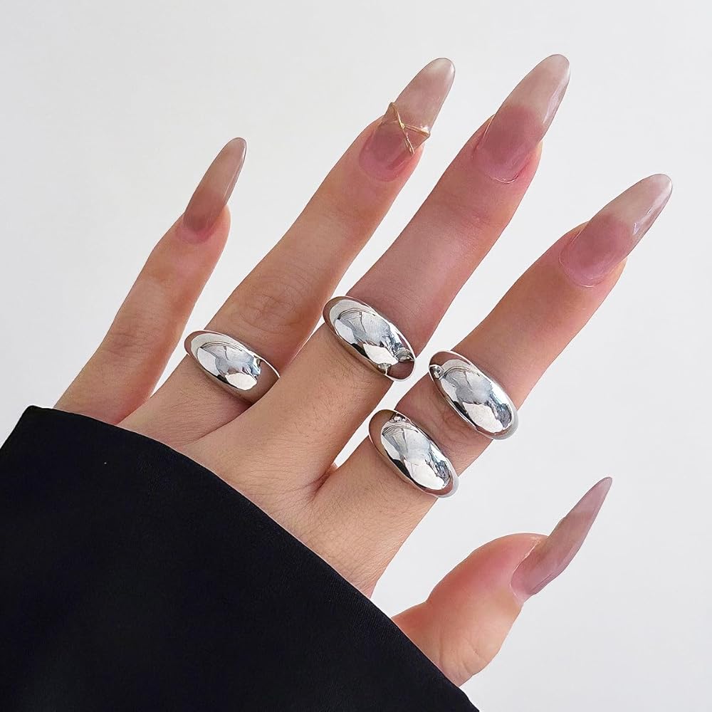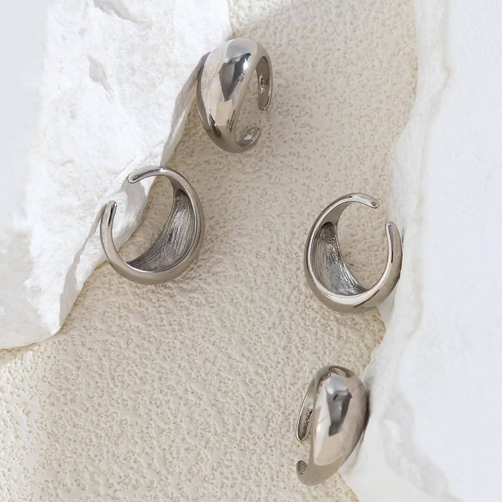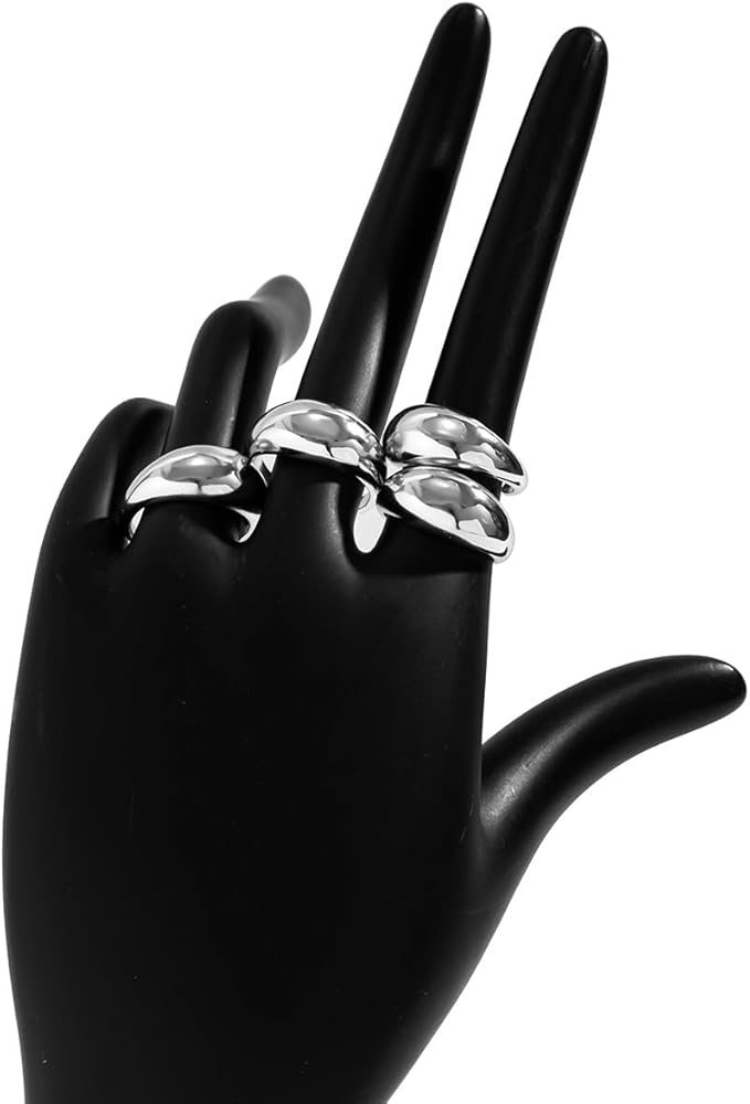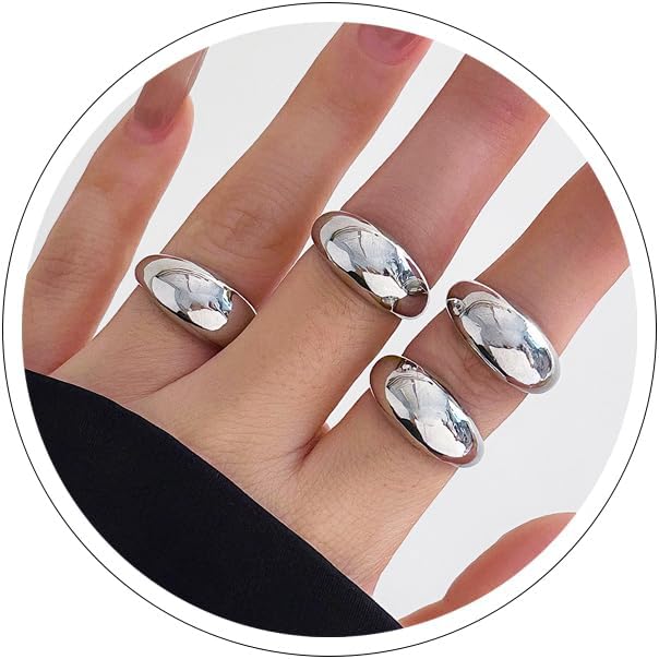 Chunky Gold Rings for Women Non Tarnish Gold Silver Stackable Ring Set Adjustable Open Dome Statement Ring Minimalist Thick Solid Ring Geometric Band Simple Rings Jewelry