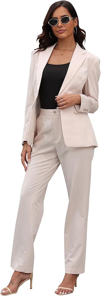 Design: Chic women suit set blazer and pants is designed as slim fit. Long sleeve cropped tops, lapel neck blazer jacket, side pockets for carrying items, one button blazer, high waisted straight leg pants with two pockets. The design enable you to wear it in formal and casual occasions