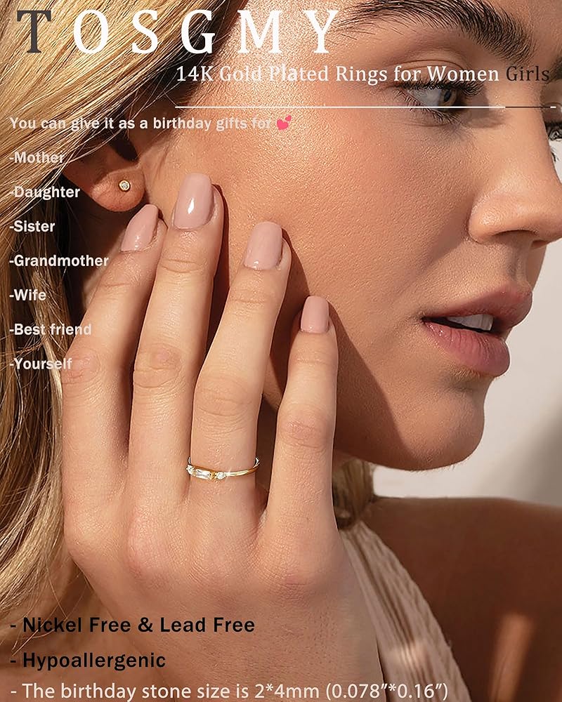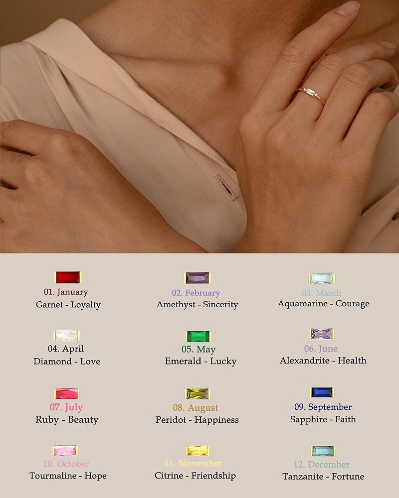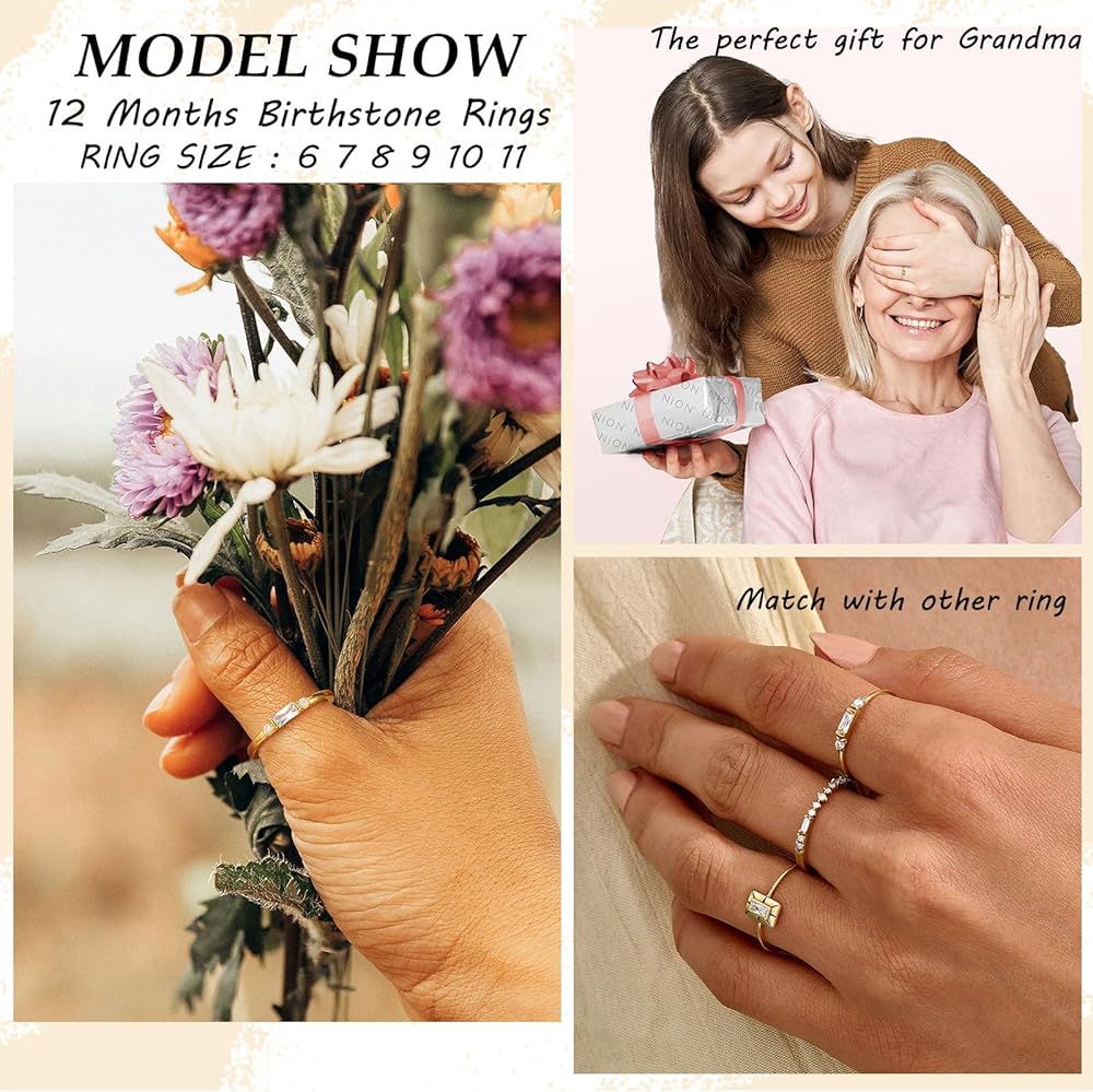 12 MONTH BIRTHSTONE RINGS FOR WOMEN:Wearing this stackable ring with a birthstone is a classic way to make a statement! Celebrate your own birthday, the birth of your , or anyone that is special in your life! And with its dainty design, gold rings are easy enough to create a colorful stack or pair with your other favorite rings