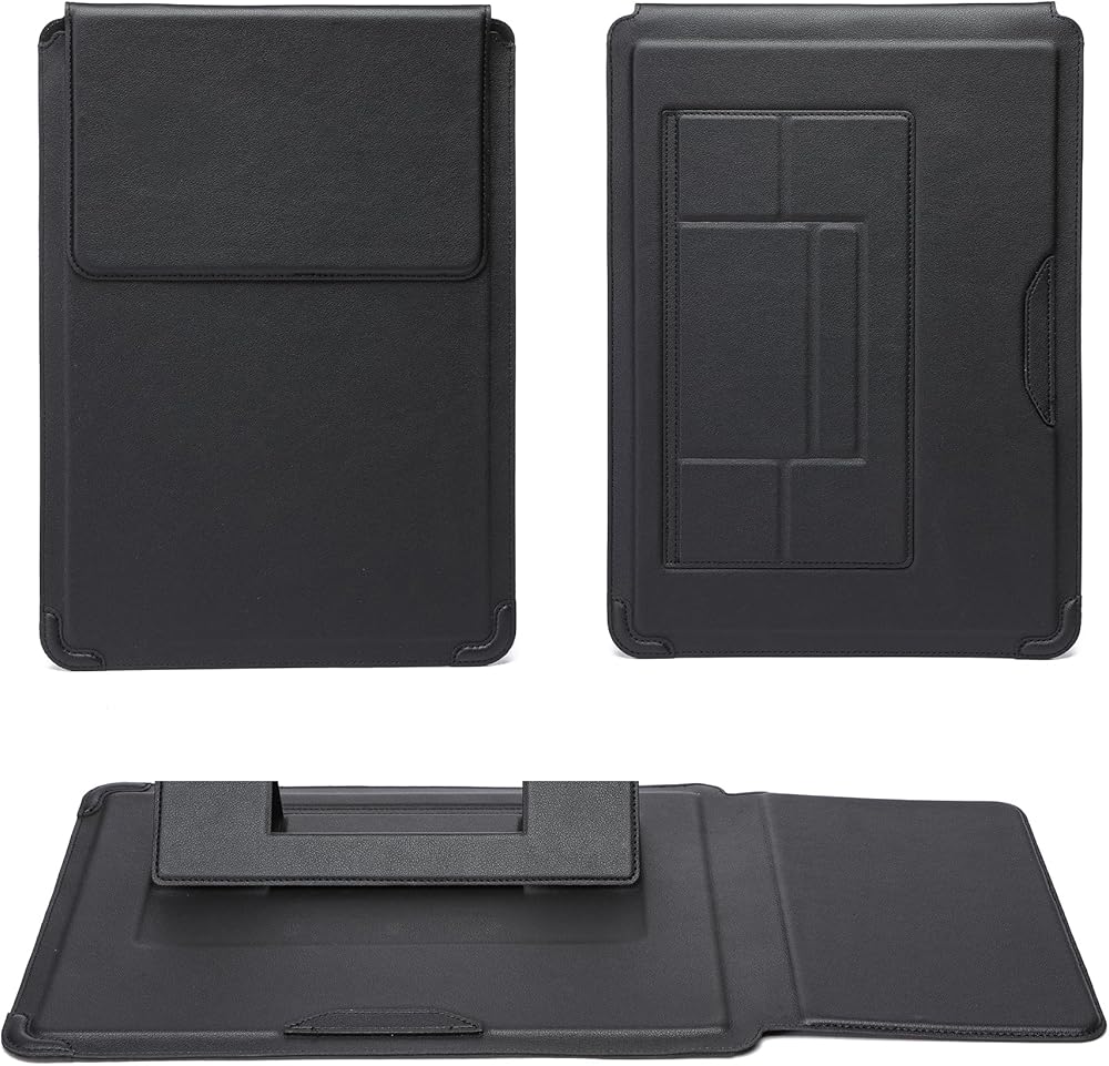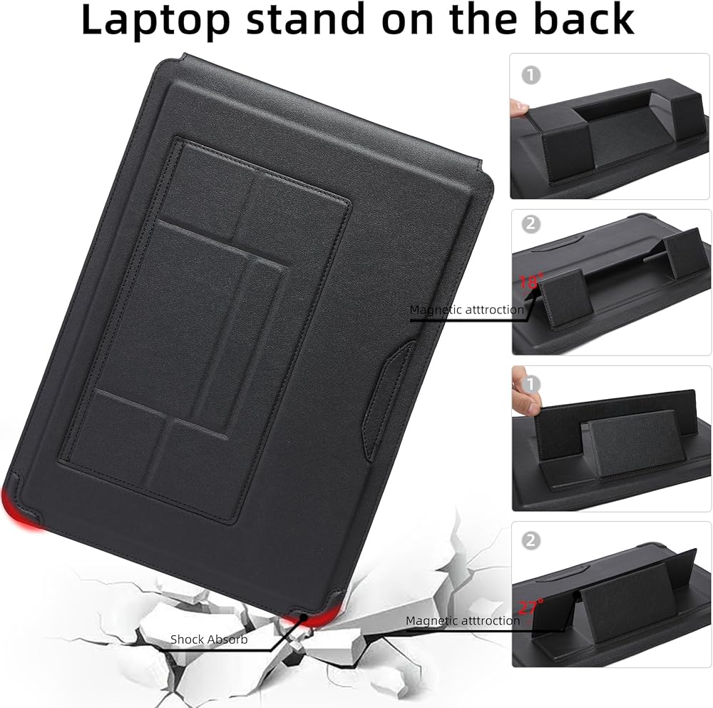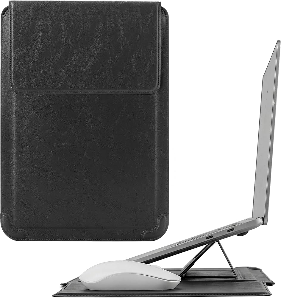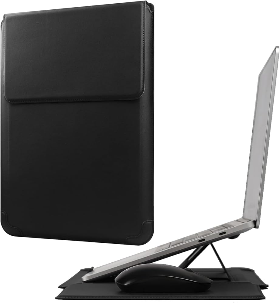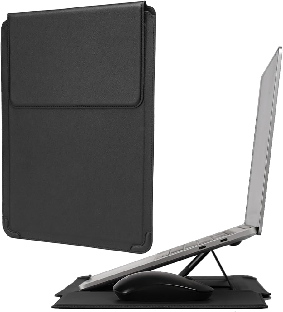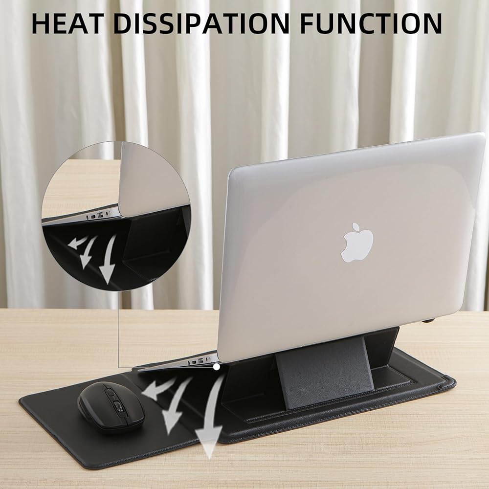Innovative 3 in 1 Multi-functional design - This sleeve can be used as a laptop stand, the flip pad can work as a portable mouse pad. It's more comfortable to watch movies, typing and working.