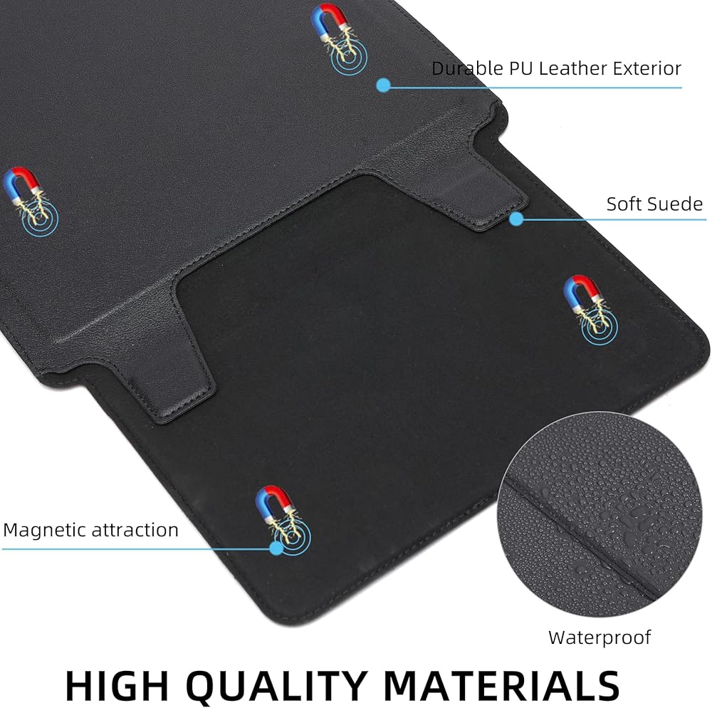 High-quality synthetic leather and soft microfiber interior, which can effectively protect the laptop from scratches, stain and dirt; the leather surface is very easy to clean.