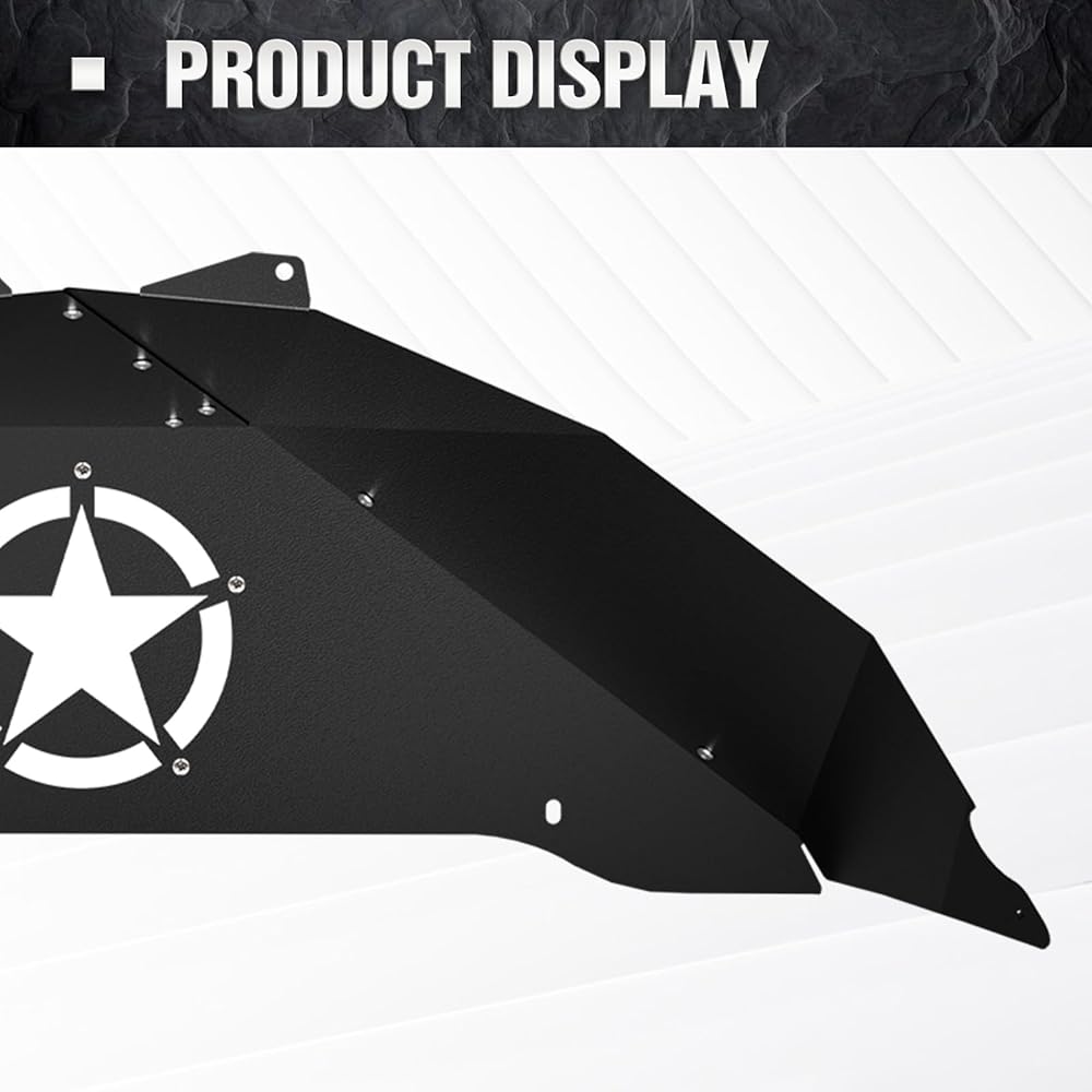 for Wrangler JK Rear Inner Fender Liners Compatible with 2007-2018 Jeep Wrangler JK & JKU Unlimited 2/4 Doors, White Star Logo Back Wheel Well Liners Mud Guard Steel Fender Flares Cover (2 PCS)