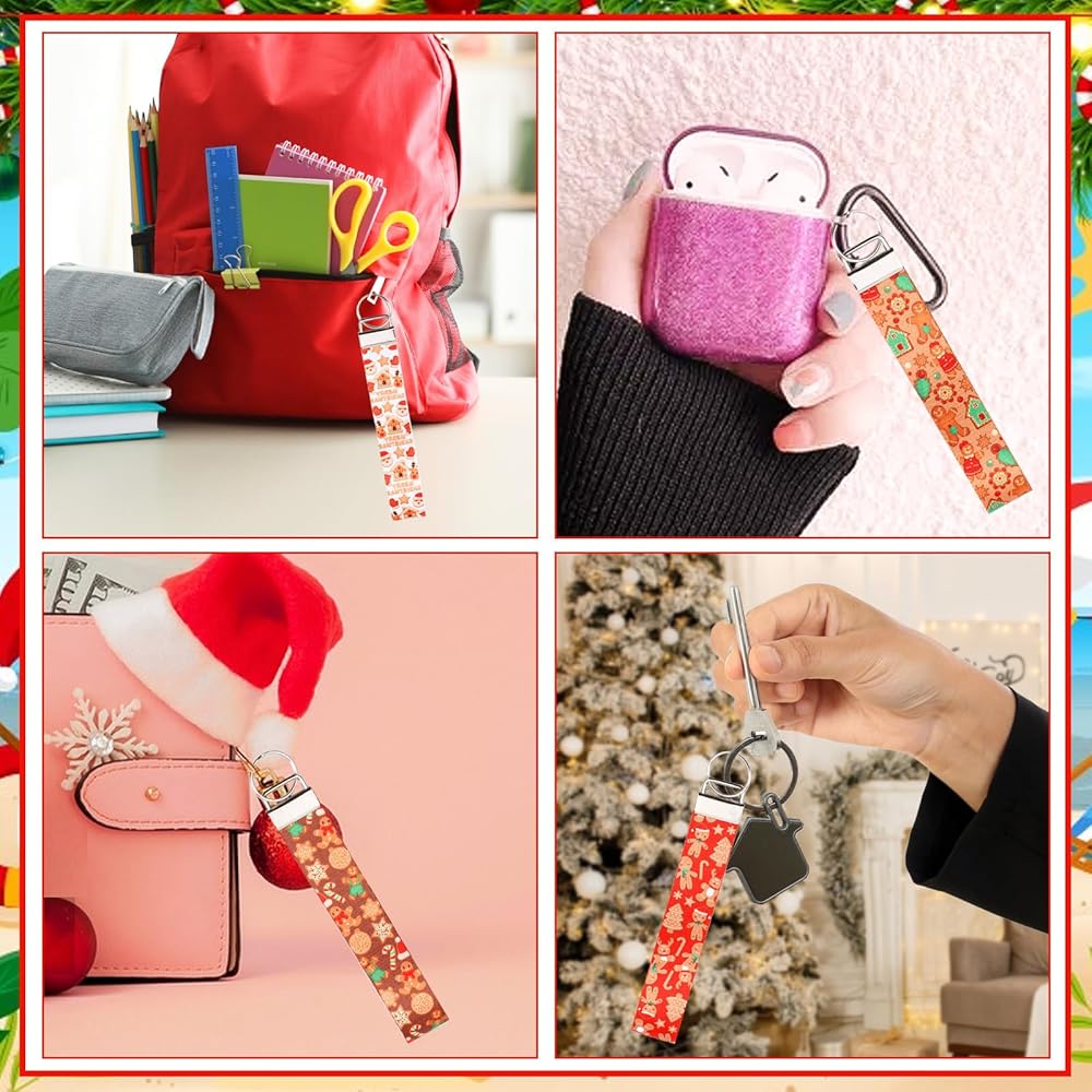 Christmas Gingerbread Keychain Wristlet Strap: This package comprises of 4 charming Christmas gingerbread wristlet straps in 4 different designs. Each strap comes with a convenient metal keychain attachment, making it effortless to secure it to your wrist or bag