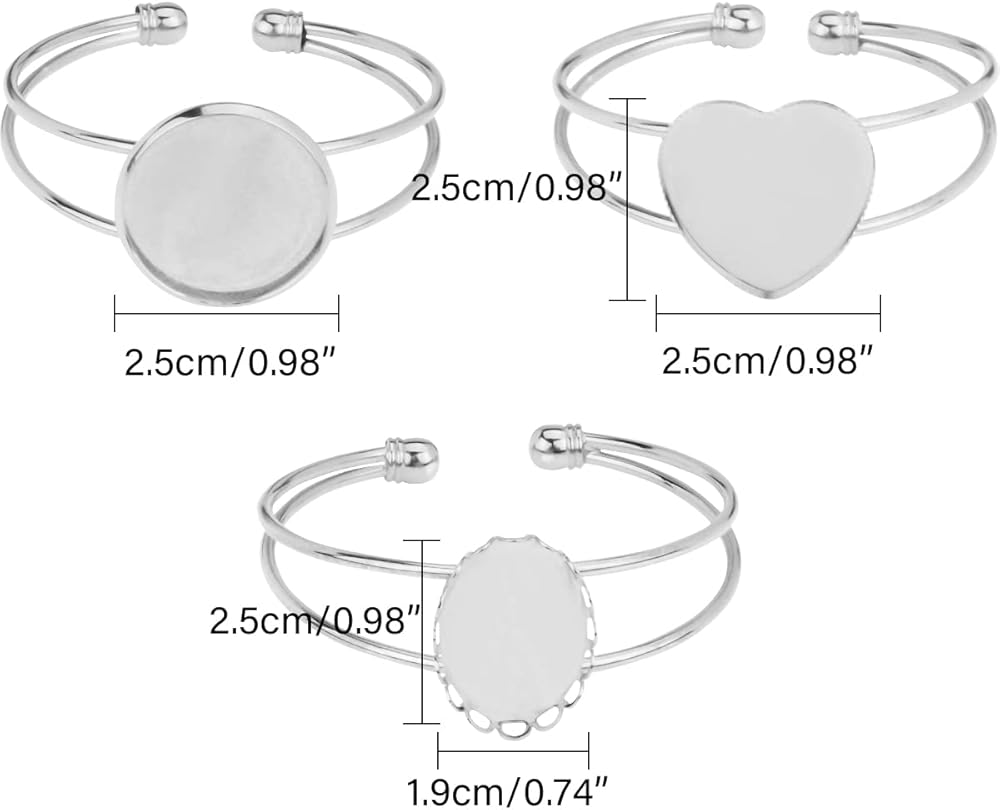 【Set Including】The tray blank bracelet set is made up of 3 different shapes of borders, round, heart and oval. Each includes 4 circles, 4 heart shapes, 4 lace oval blank dial bases and 12 corresponding clear glass cabochons. There are plenty of them so you can use your imagination to create meaningful pieces.