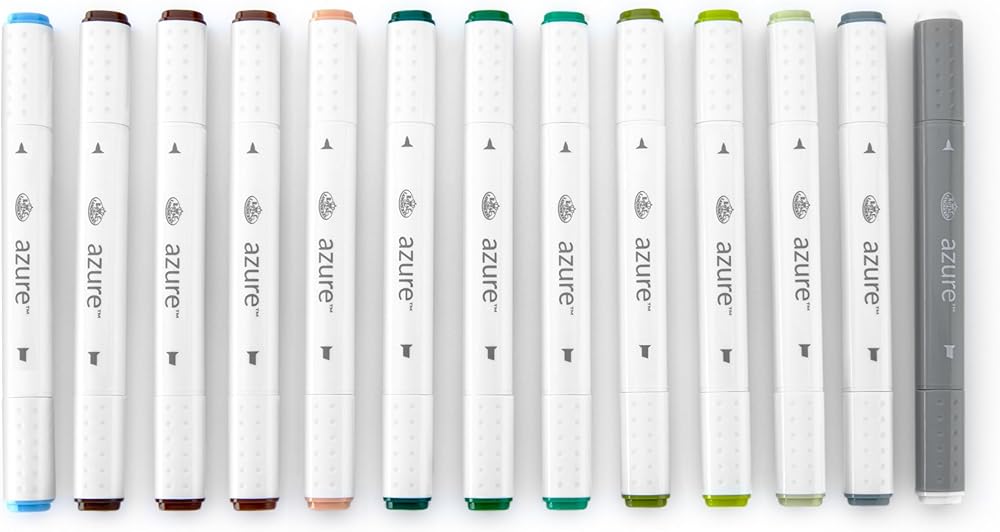Royal & Langnickel Azure, 13pc Dual-Tip, Alcohol Based Marker Set, Includes - 12 Markers & 1 Blender, Forest Colors