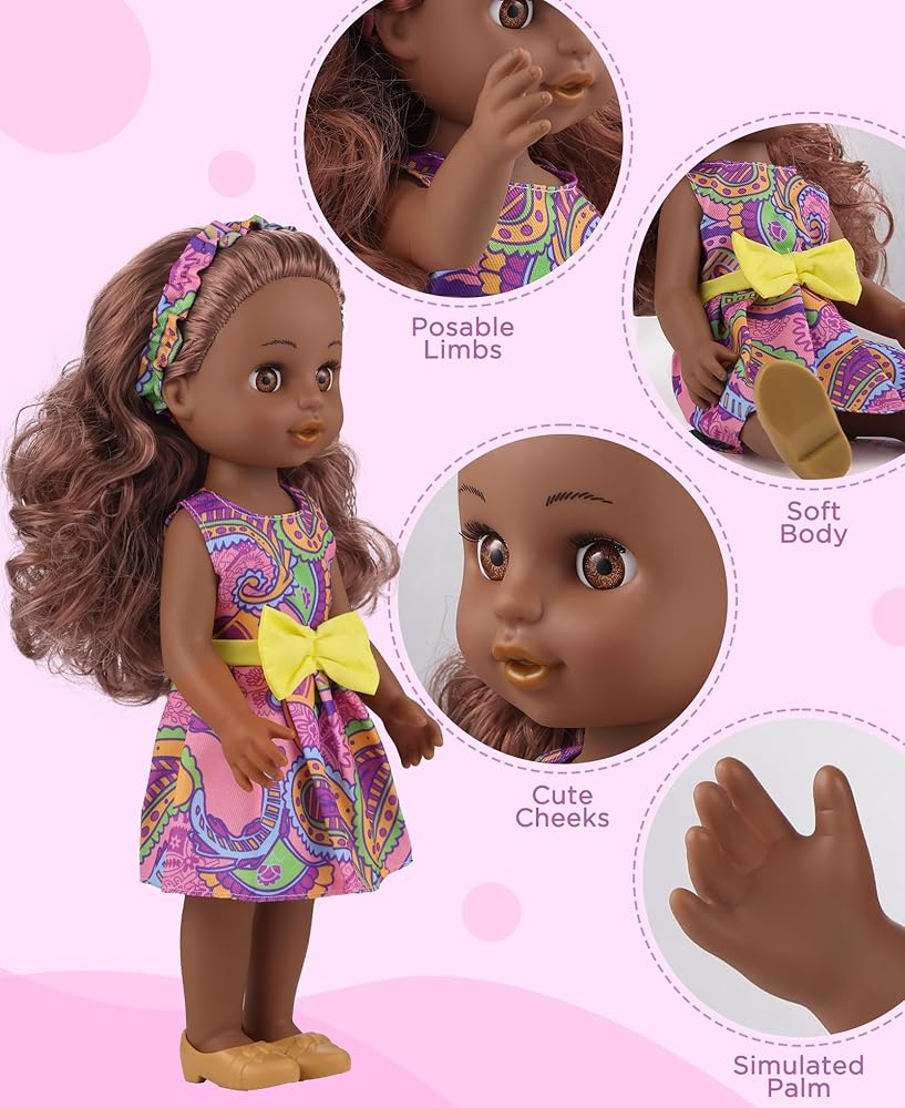 Adorable Black Doll: The posable black girl doll stands at 14 inches tall, it is easy for little hands to hold and cuddle, easy to move around and dress/undress, perfect for nurturing a child's love for dolls and imaginative play.