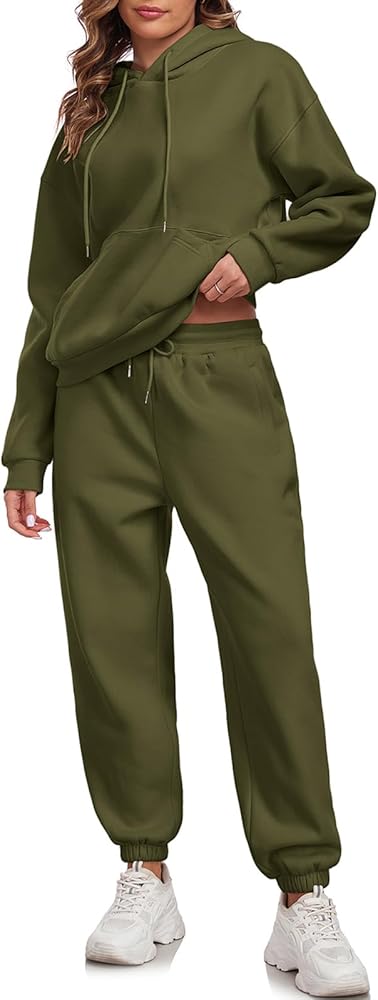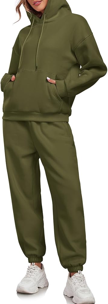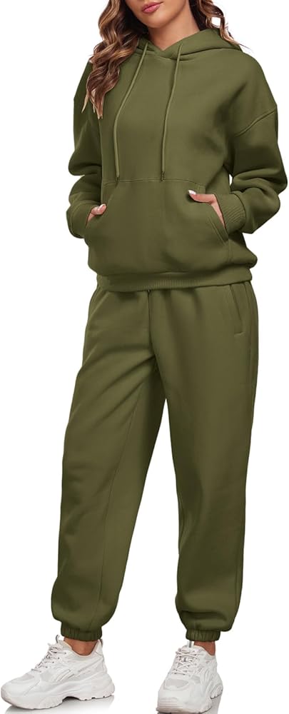 SUPER SOFT AND COMFORTABLE FABRIC: Womens 2 piece outfits lounge hoodie sweatsuit sets, made of 50% polyester and 50% cotton, the thick fabric is soft, cozy and warm, hoodie and sweatpants set for women, which makes you feel warm and free, two piece loungewear sets for women, and the loose fit provides more room for your shoulders and arm area, so you can move freely even in winter