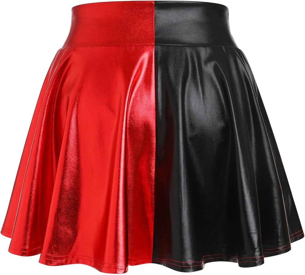 Features: Solid Color, High Waist, Metallic Fabric, Elastic Waistband