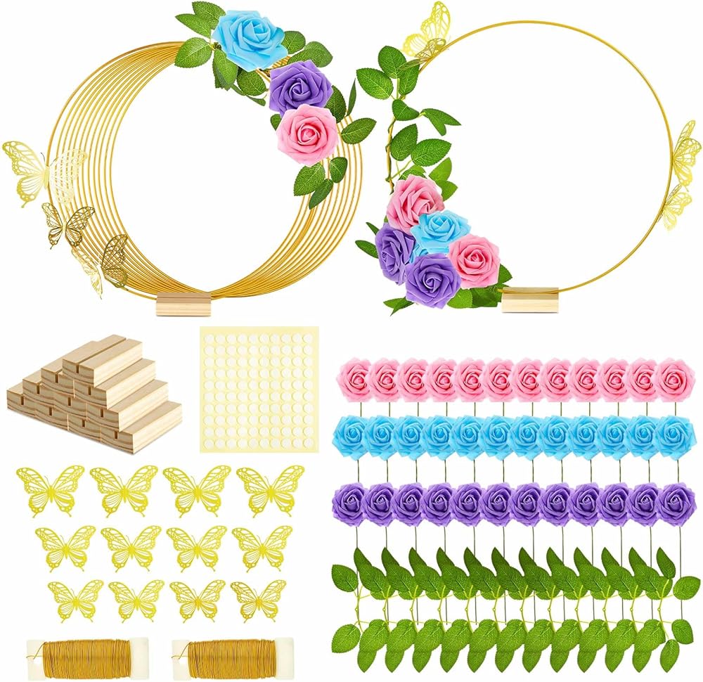 Given its versatility and inherent charm, this wedding table centerpiece can also serve as an ideal gift option. Present it to a loved one who enjoys creating beautiful table setups. The possibilities are endless with this butterfly themed metal floral hoop centerpieces kit.