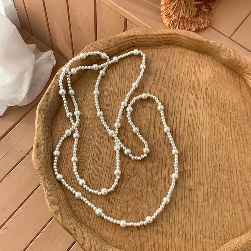 Long Pearl Necklaces for Women 1920s Fashion Faux Pearl Necklace Vintage Layered Pearl Necklaces Pearl Chain Necklace 1920s Bridal Wedding Party Costume Jewelry