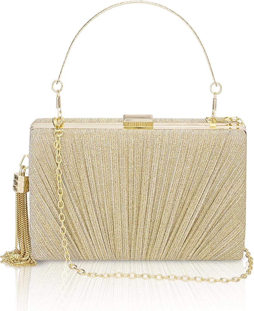 【Elegant Design】: This evening clutch comes with a detachable top handle and an removable chain, could offer versatile carrying options for you, 3-in-1 style, can use as a evening handbag, clutch purse, shoulder bag, or crossbody purse. Simple with multiple styles. And designed with exquisite tassel decoration and metal edging make this women's evening bag more fashionable, beautiful, and noble.