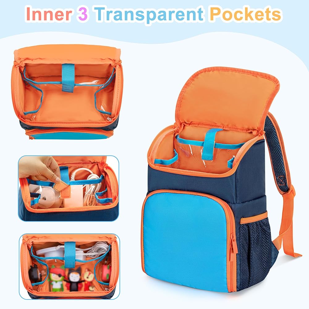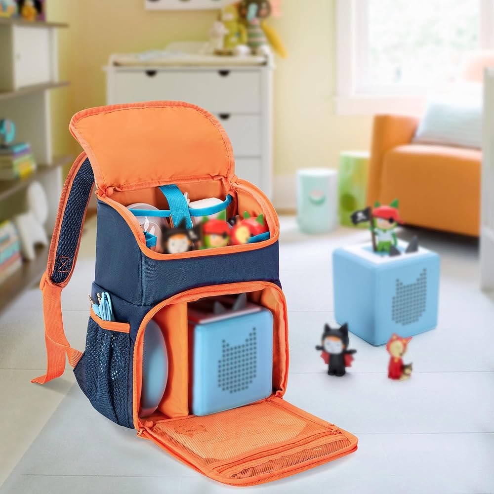 Carrying Backpack Compatible with Toniebox 2/1, Travel Bag for Audio Player Starter Set, Accessories Storage for Charger Headphone, 3 Clear Pockets for Figures Display, Blue (Bag Only)