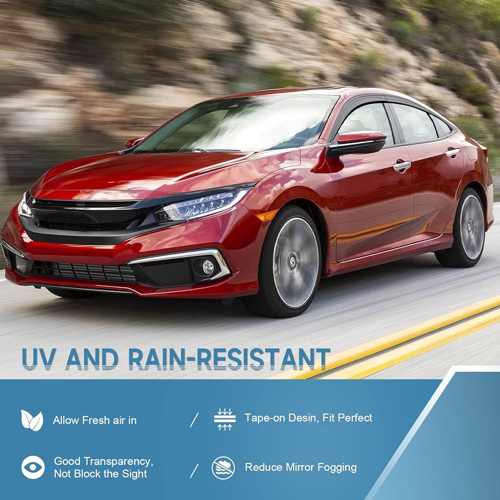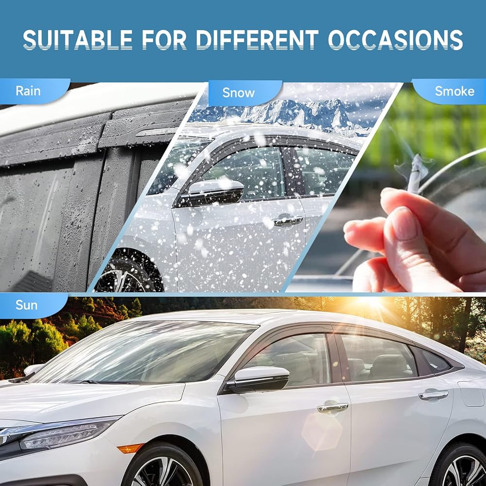 【Air In & Rain Out】Great for all weather conditions, this window deflectors help improve ventilation inside your car to reduce mirror and window fogging while increasing air circulation improve air quality in cars. Highlander 2020-2024 rain visor have an aerodynamic design that redirects air past your window during driving keeping rain and airborne debris out to let you comfortable.