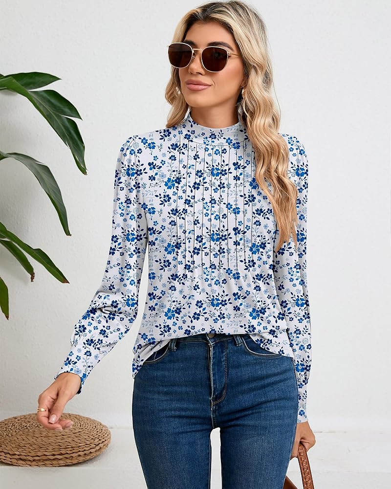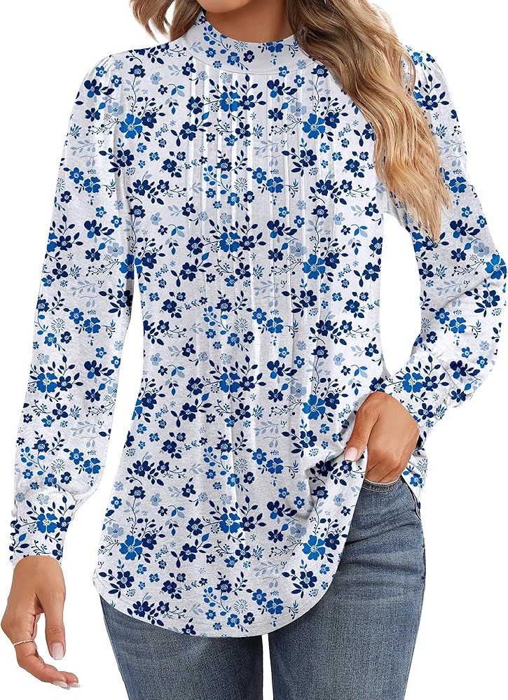 Design: this women's mock neck long sleeve features delicate designs, giving it a stylish look. The mock neck fits your neck and makes you look more elegant and intellectual. The pleated style gives the women's puff long sleeve tunic tops a layered feel