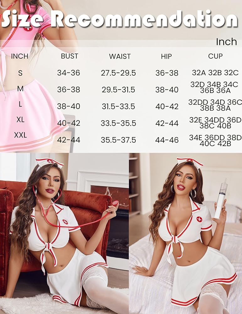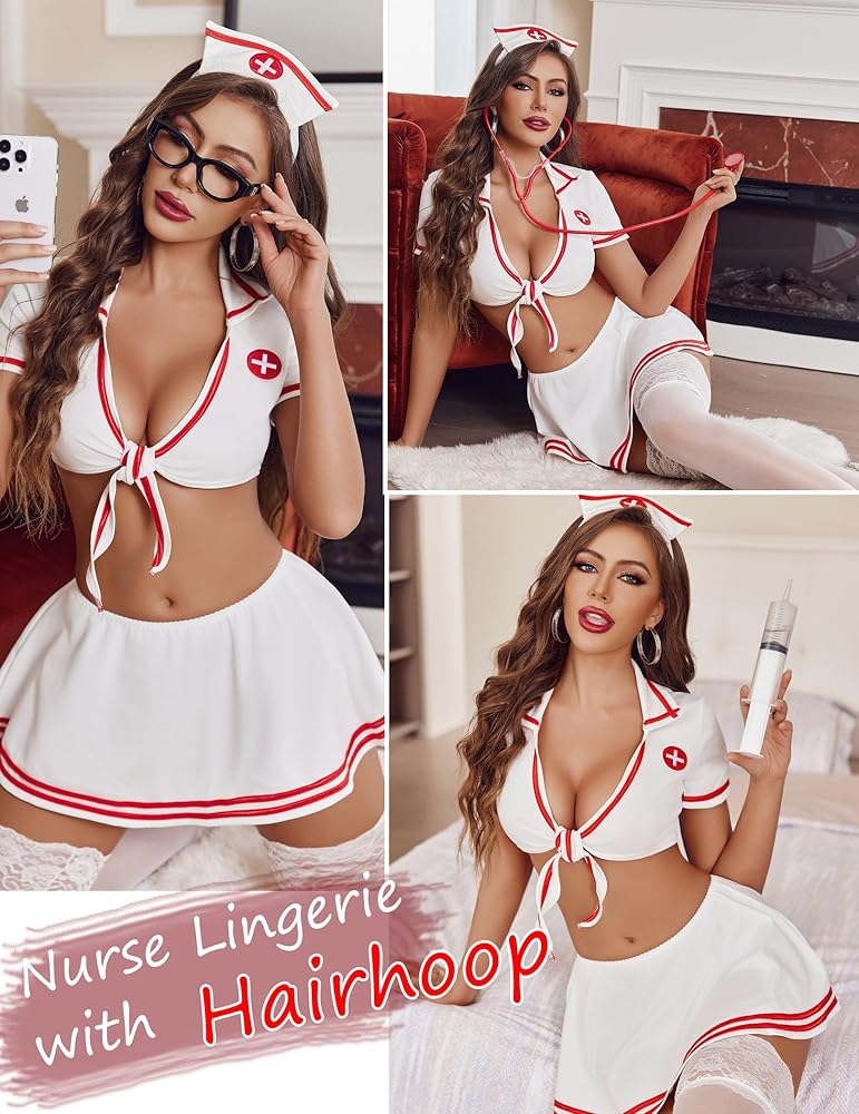 Package Content: 1 X sexy nurse costume outfit for Women(lingerie set for women sexy naughty with crop top and mini skirt and nurse hairhoop)