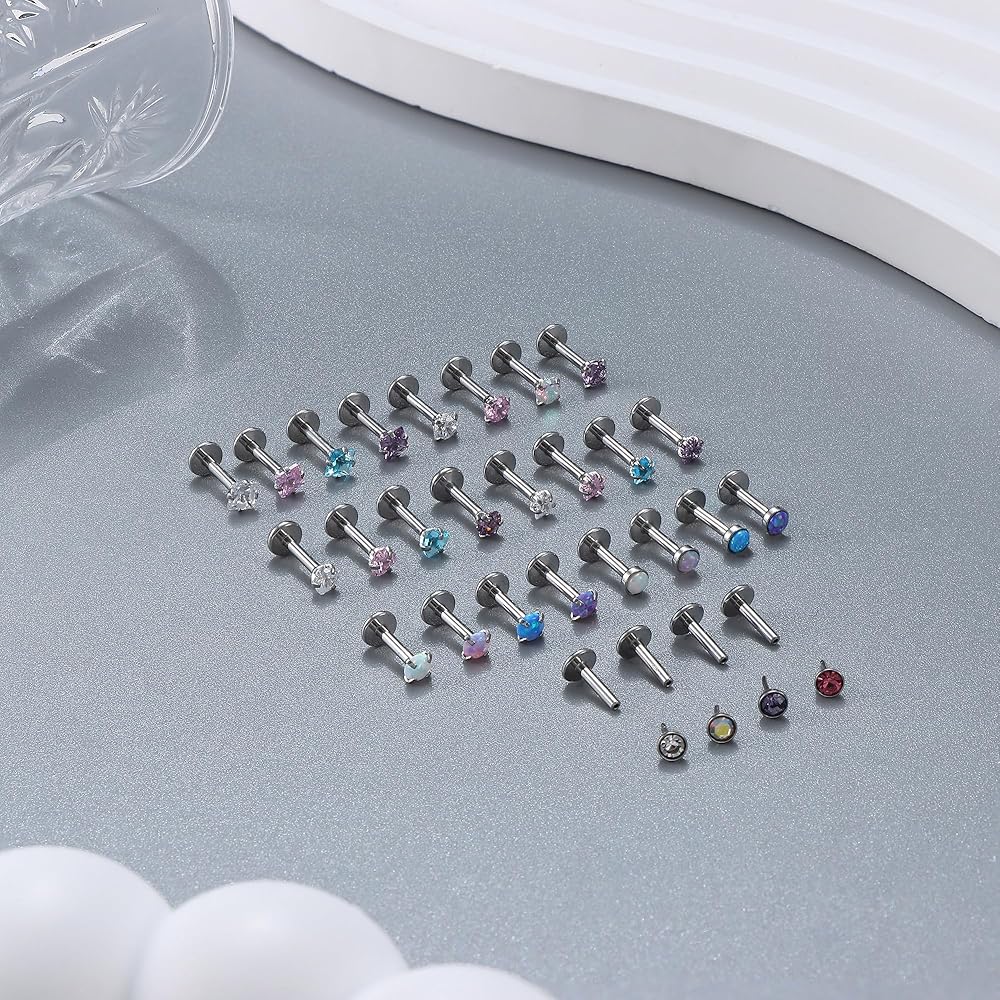 Nose Rings Studs Size: The tragus piercing jewelry are available in 3 different bar thickness (16G-1.2mm, 18G-1.0mm and 20G-0.8mm) and 2 different lengths (0.24"-6mm, 0.31"-8mm). Top CZ / Opal Size: 3mm-5mm. Standard size for both women and men of all ages. Please choose the appropriate size before purchasing