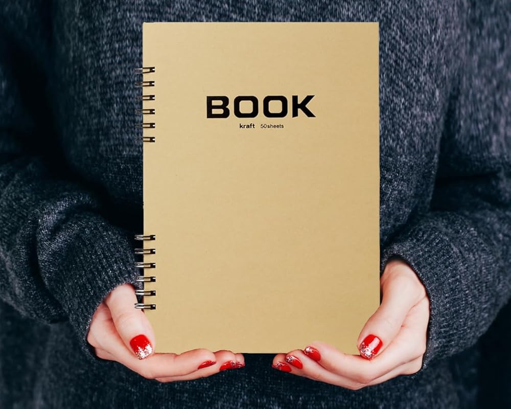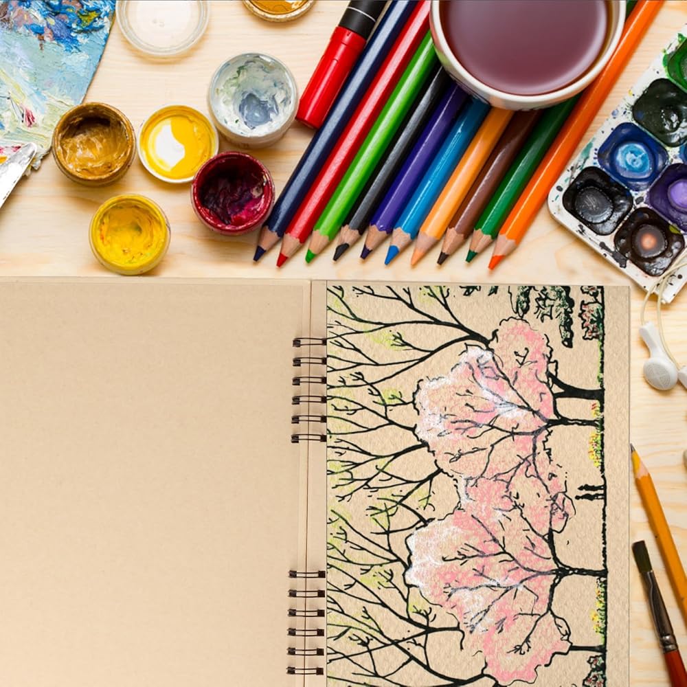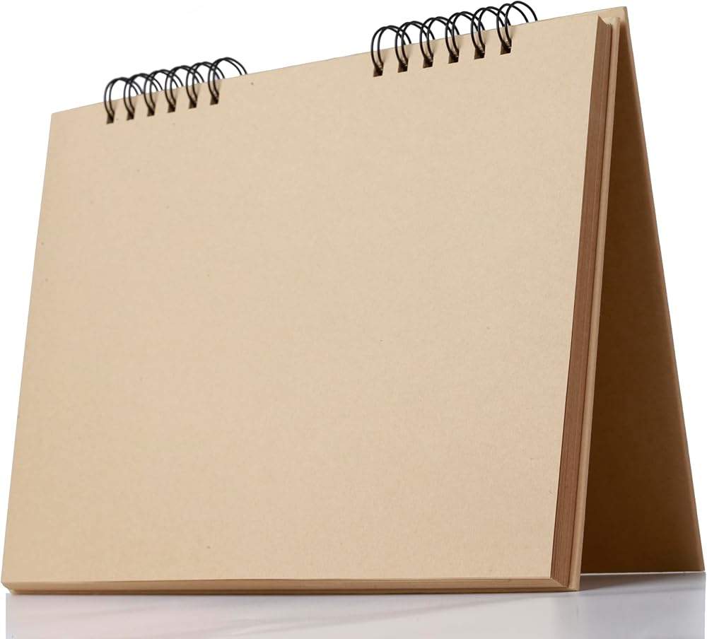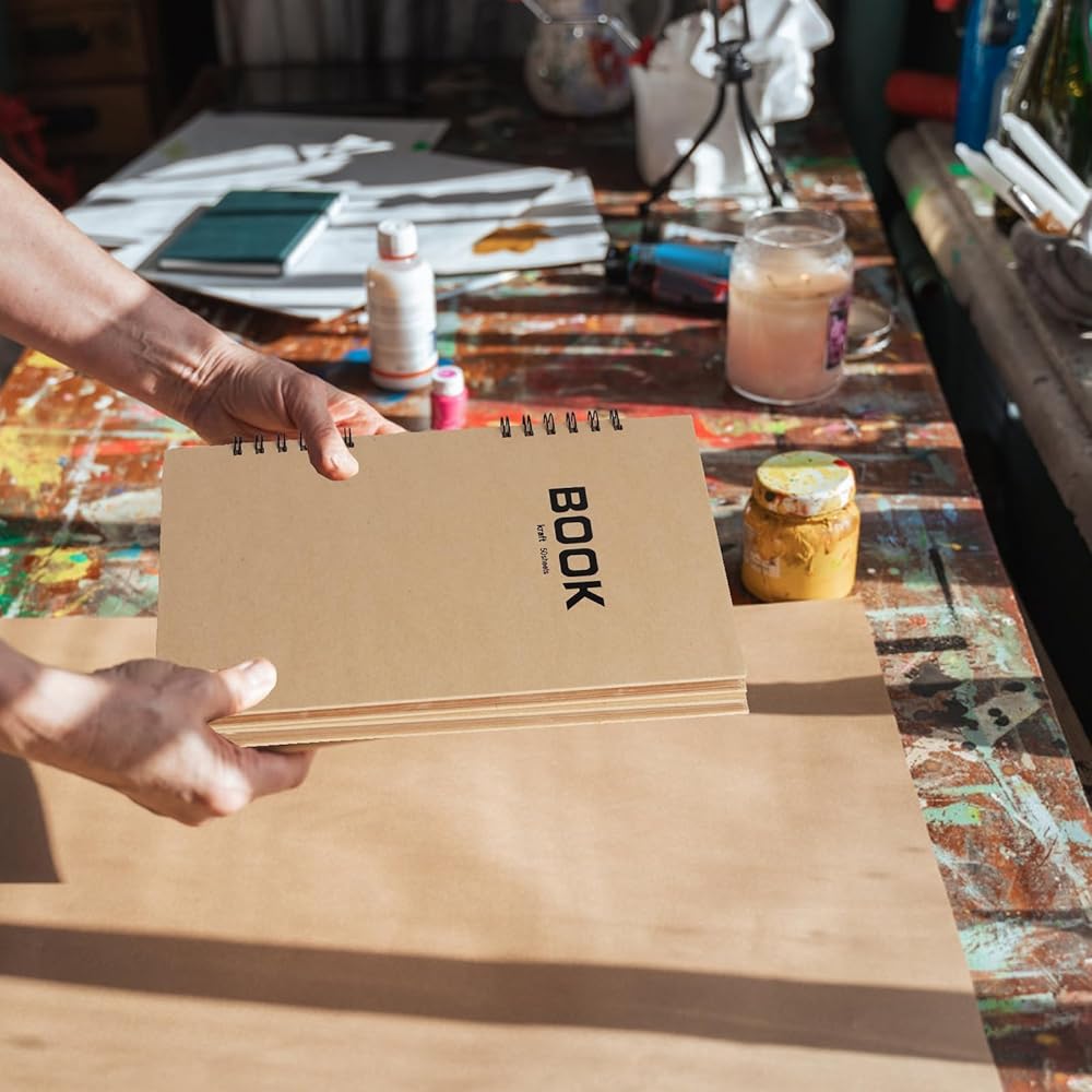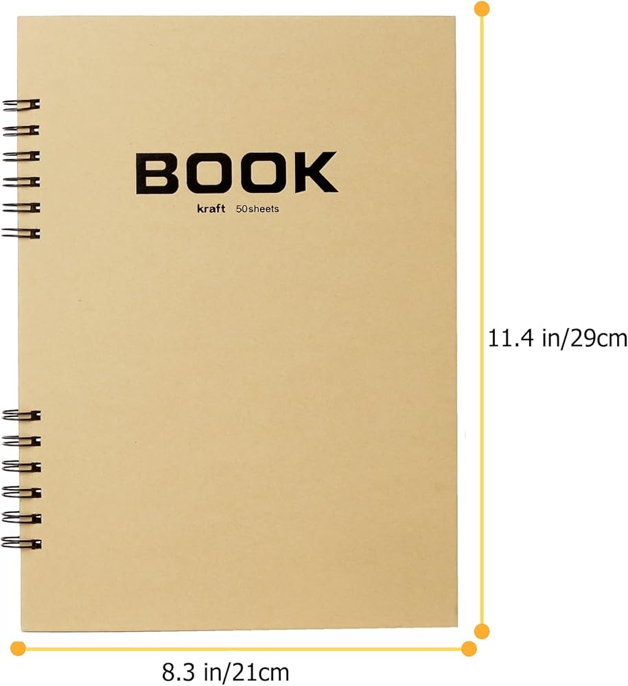 Versatile Tan Tone Sketchpad :Kraft hardcover spiral notebook with 100 blank pages (50 sheets) Durable spiral binding allows pages to lay flat for convenient drawing,sketching,journaling,writing or photo mounting.Sturdy hardcover protects the pages inside.perfect for preserving cherished memories.