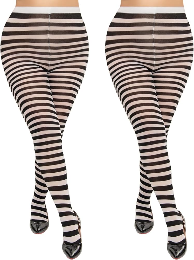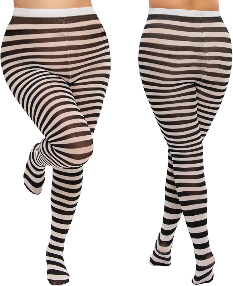 Durable Material -- Made of soft and skin-friendly fabric, these plus size striped tights women are not only comfortable to wear but also durable with a 40D thickness to prevent easy tearing.
