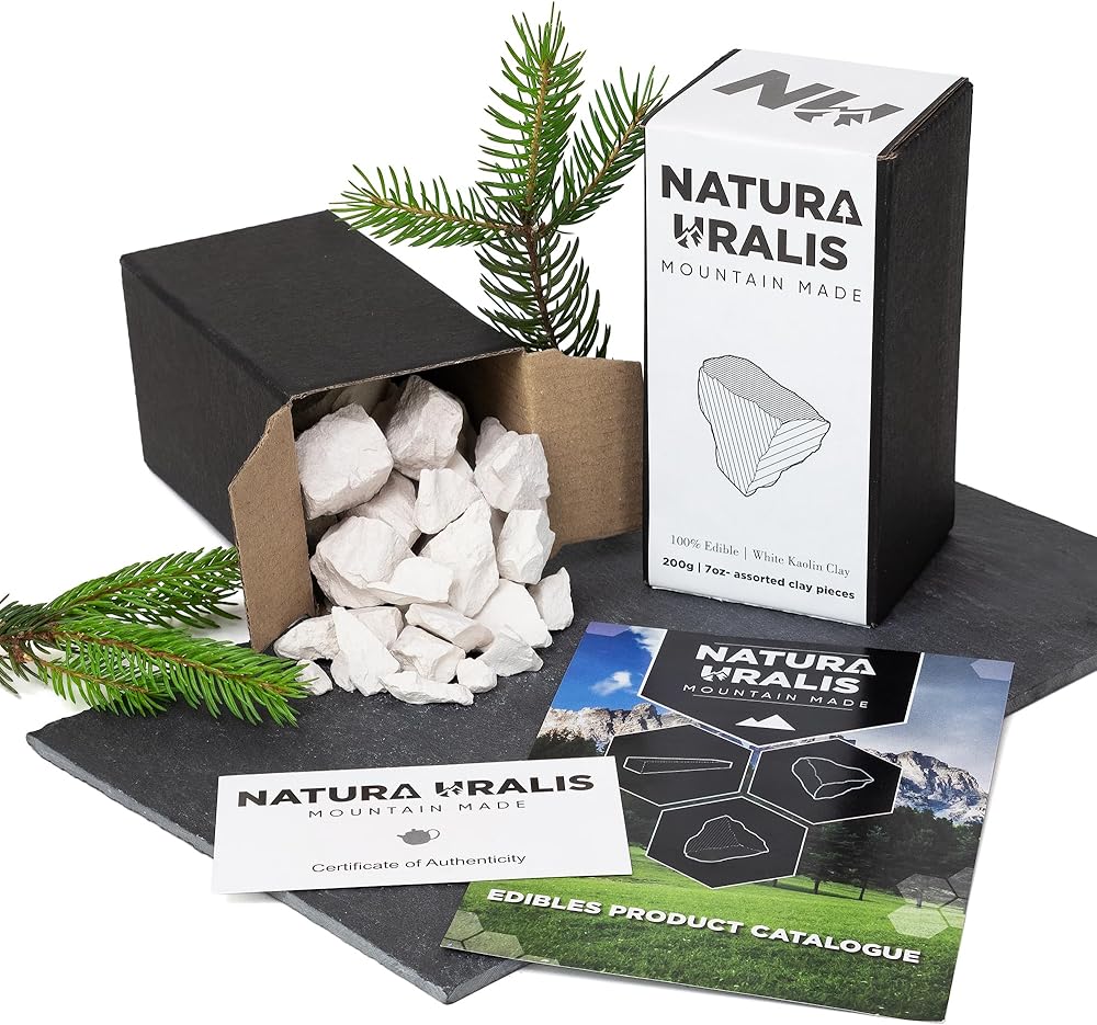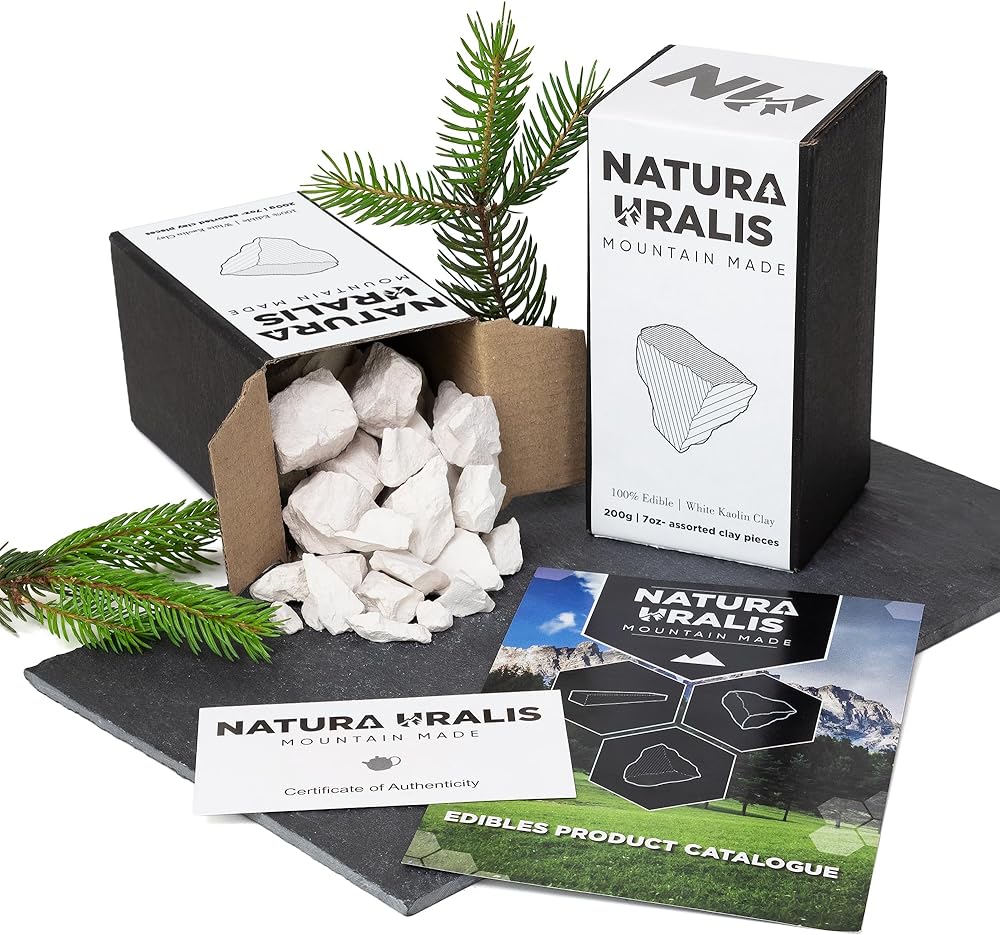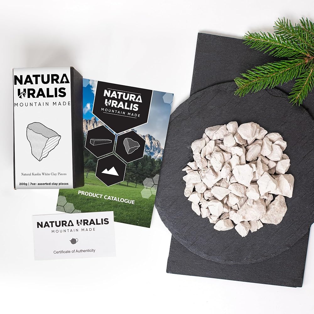 COMPOSITION | Our Kaolin white clay is a clay mineral with the chemical composition: Al2Si2O5(OH)4. It is usually soft, white and very earthy. Kaolin clay is a simple layered silicate mineral, produced from the weathering of other minerals such as feldspar. In nature the mineral often interacts with iron, occasionally taking on a off-white to reddish hue. Kaolin that has a low, or no iron content, is predominantly pure white.