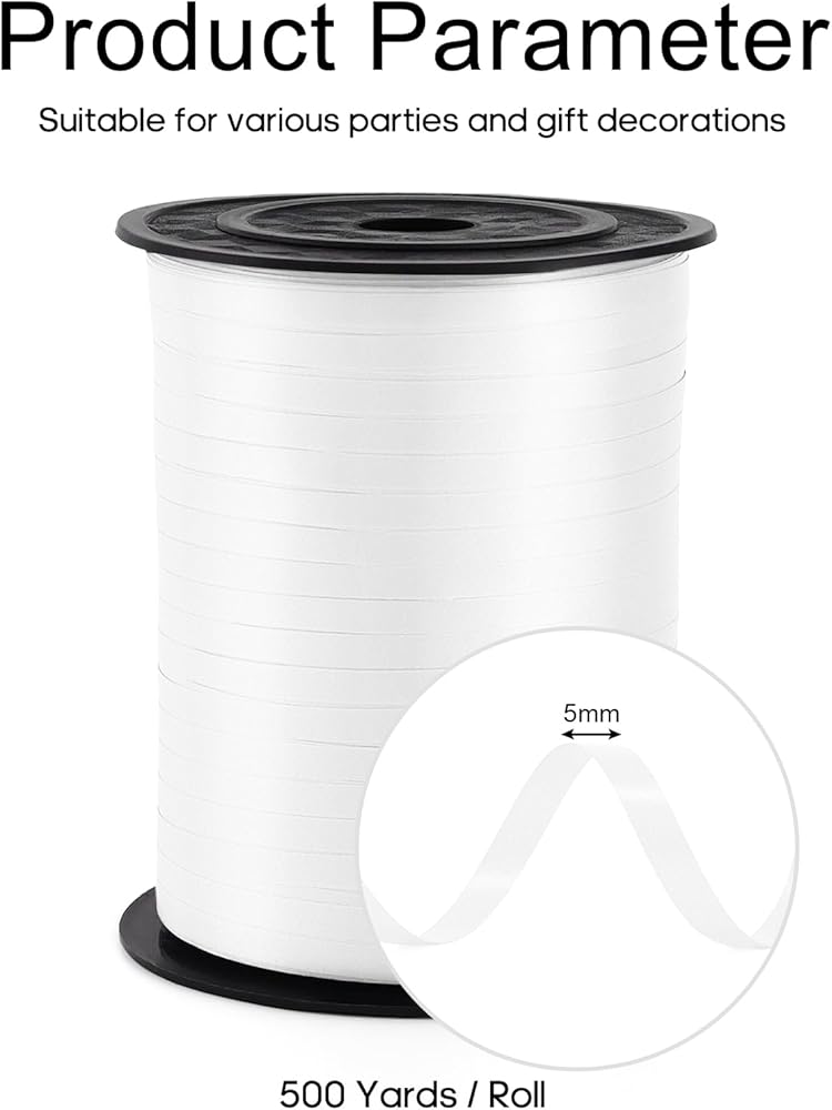 These exquisite curly ribbons are perfect for adding a touch of elegance and charm to your crafts, wedding parties, Valentine's Day, and other holiday occasions. Curled ribbons are made of high-quality plastic and are durable, ensuring their continued use for years to come. These ribbons have a total length of 500 yards and a width of 5 cm/0.2 inches, and are widely used for various projects. Whether you want to make beautiful balloon decorations, package gifts, or add decorative elements to your home decor, these curly ribbons are the perfect choice.