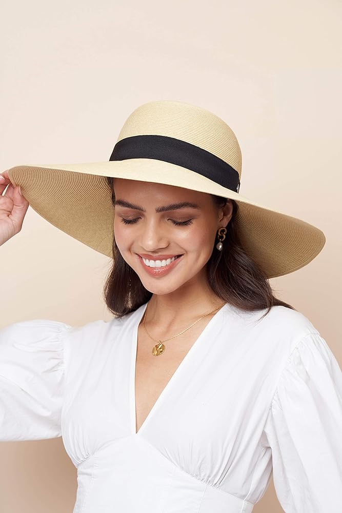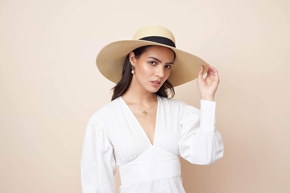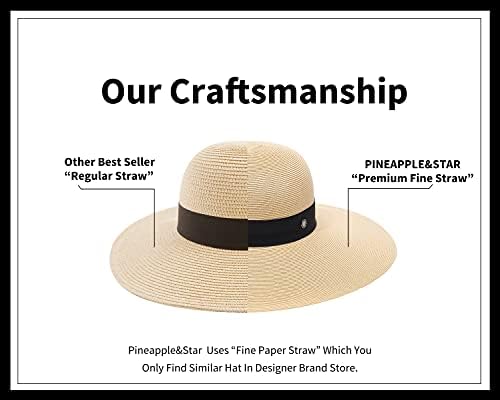 Pineapple&Star Jeune Wide Brim Sun Straw Beach Hat Fine Braid UPF50+ for Women