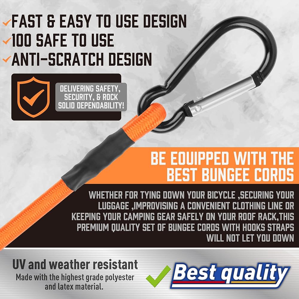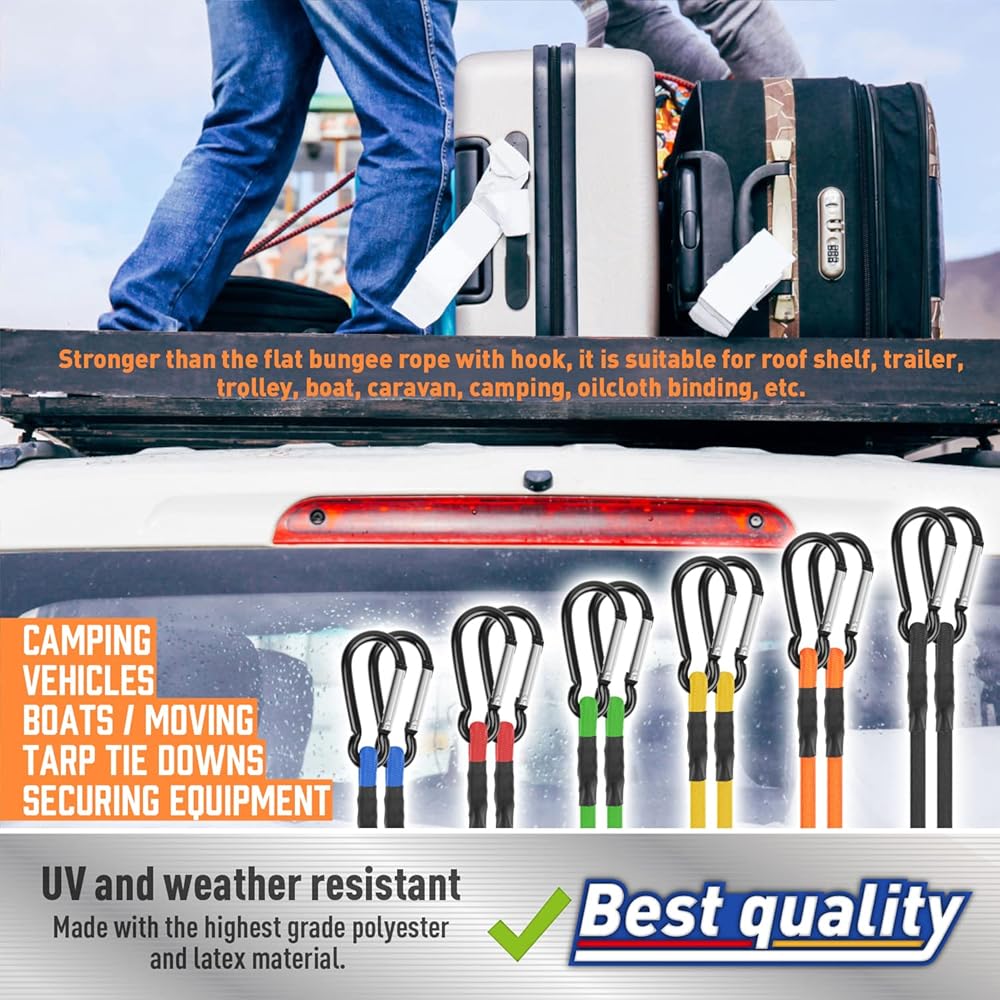 [Widely Applicable]: Perfect for any outdoor activity, always keep it in your backpack. Stronger than the flat bungee rope with hook, it is suitable for roof shelf, trailer, trolley, boat, caravan, camping, oilcloth binding, etc.