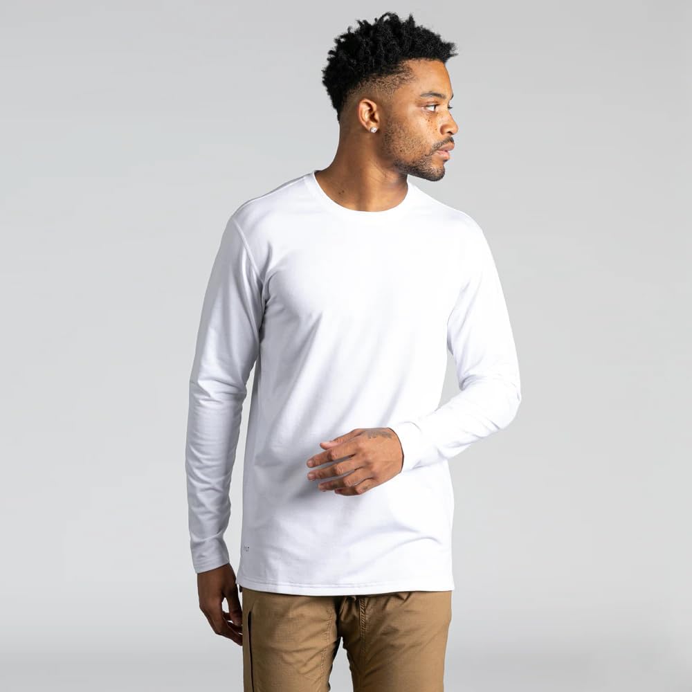 ELEVATE YOUR DAILY LOOK: The Basic Crew Split Hem Long Sleeve updates a classic with premium fabric and a relaxed athletic fit. The distinctive side split hem adds a unique touch to this versatile, all-season style.