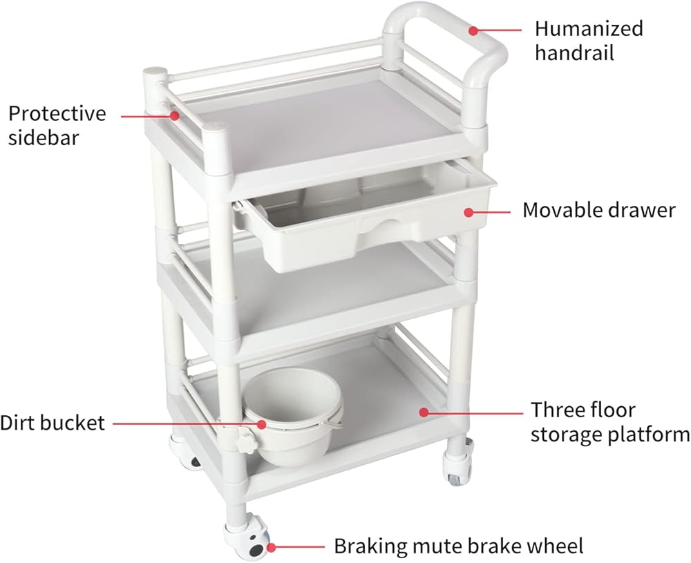 Wide Application: This utility cart is suitable for hospitals, beauty salons, clinics, SPA, tattoo, and pet shops to store various medical tools or beauty supplies. Perfect for doctors, nurses, pet groomers, nail technicians, or other professional staff to organize their items
