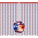 Package Include: 2 packs of foil tassel curtains.Each size: 3.3 x 6.6 ft (W x L),Composed of star shapes in three colors: red,white, and blue.Perfect for patriotic party decoration background screen,4th of July decorations,fourth of July backdrop,4th of July photo backdrop, 4th of July streamers,July 4th party supplies,4th of July photo props,red white blue decorations