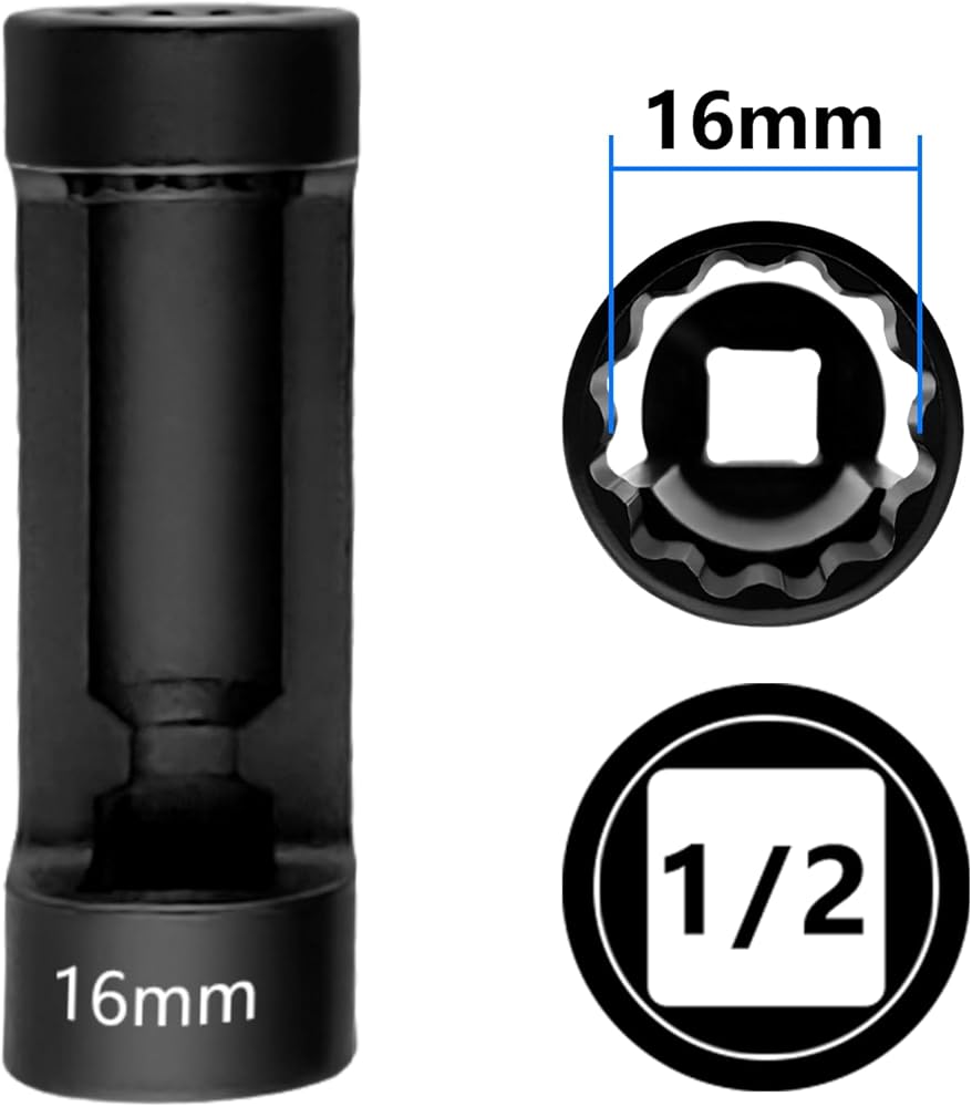 【Specification】: 16mm, 18mm, 19mm, 21mm, 22mm, 24mm strut nut socket 12 point design, with 1/2" square drive slot, length 3.1 inches. the uspension strut spreader socket head is 5*8mm and 4.5*6.5mm.