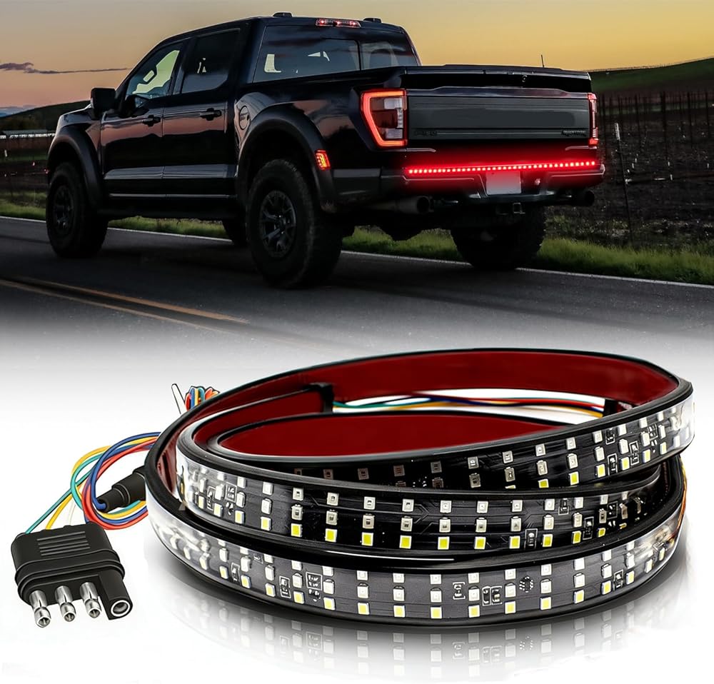 Tailgate Light Bar 60 Inch, Triple Row Truck Tail Light Strip for Dodge RAM Fo-rd F150 F250 GMC Silverado, 504 LED Full Function Brake Reverse Turn Signal Hazard Lights No Drill Install, 60 Inch
