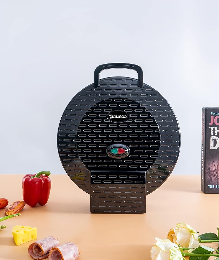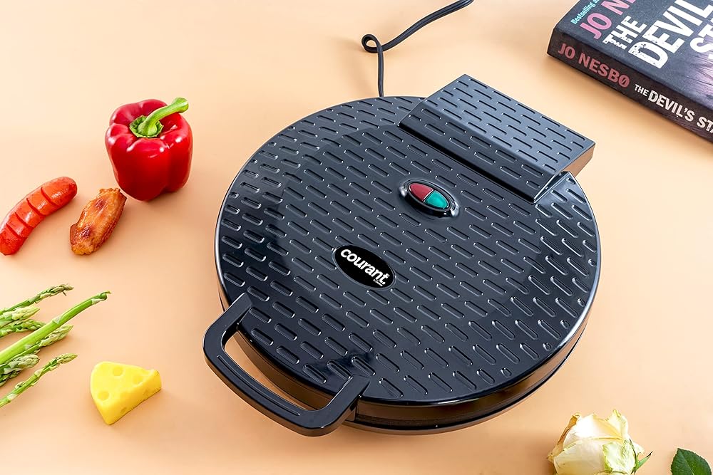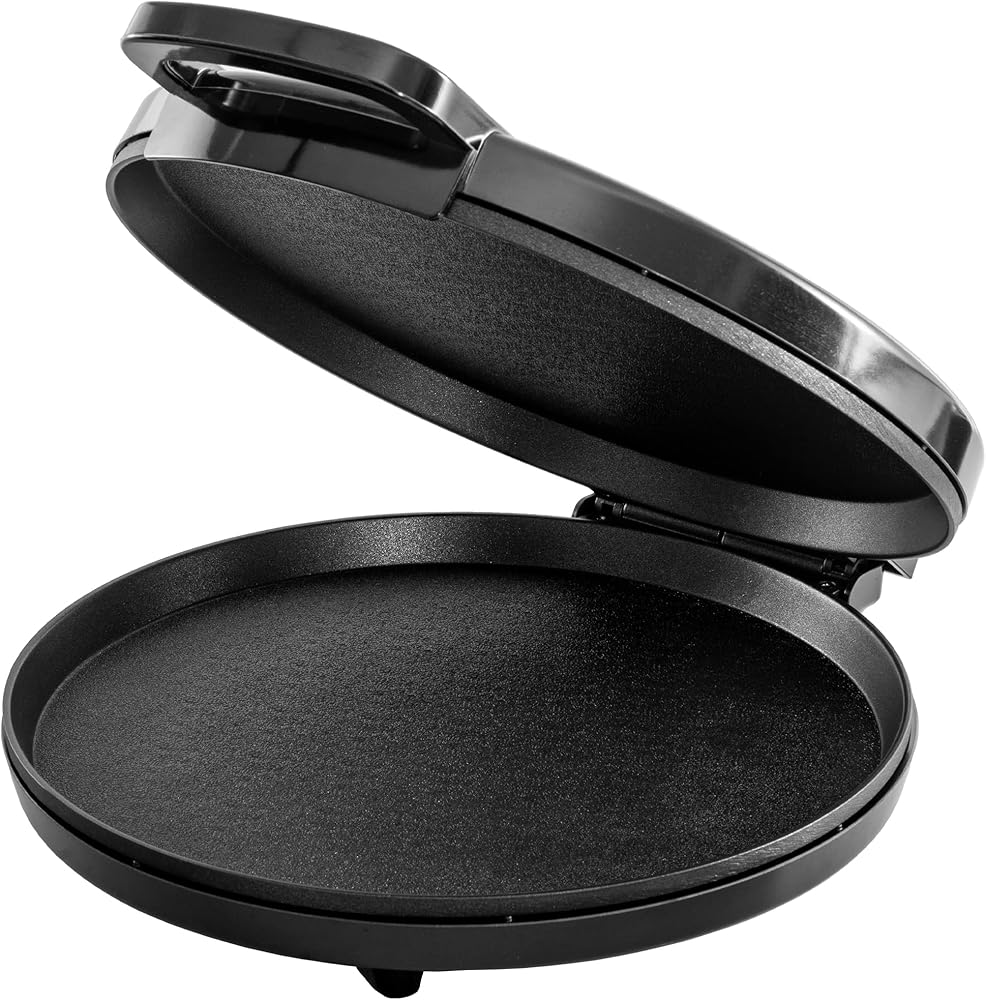 Large Cooking AreaThe 12” diameter cooking area features cooking plates on the top and bottom for even cooking throughout and provides a delicious crispy crust. Non-stick coating on baking plates make it easy to wipe clean after every use and helps eliminate any gooey leftovers.