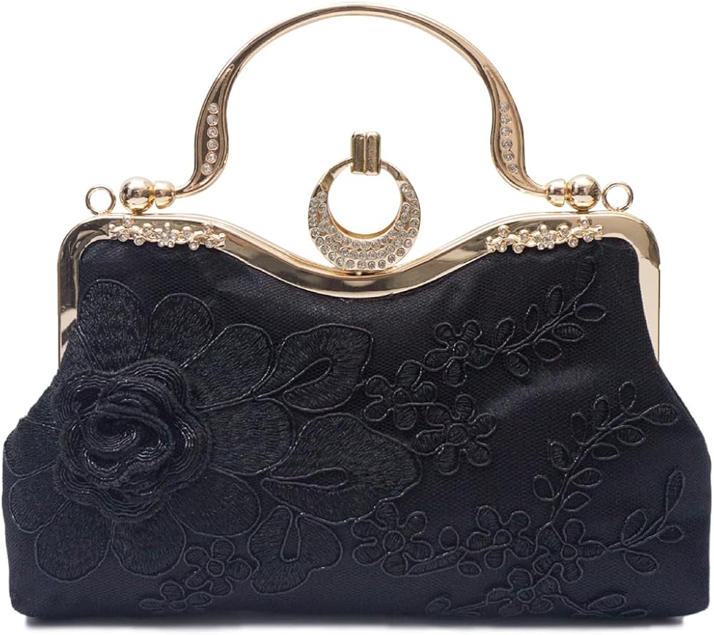 ☞Retro metal frame and beautiful rhinestone buckle adorned on the clutch purse. Exquisite flowers embroidery makes the clutch bag more fashion.