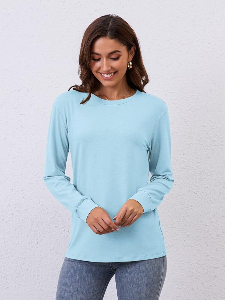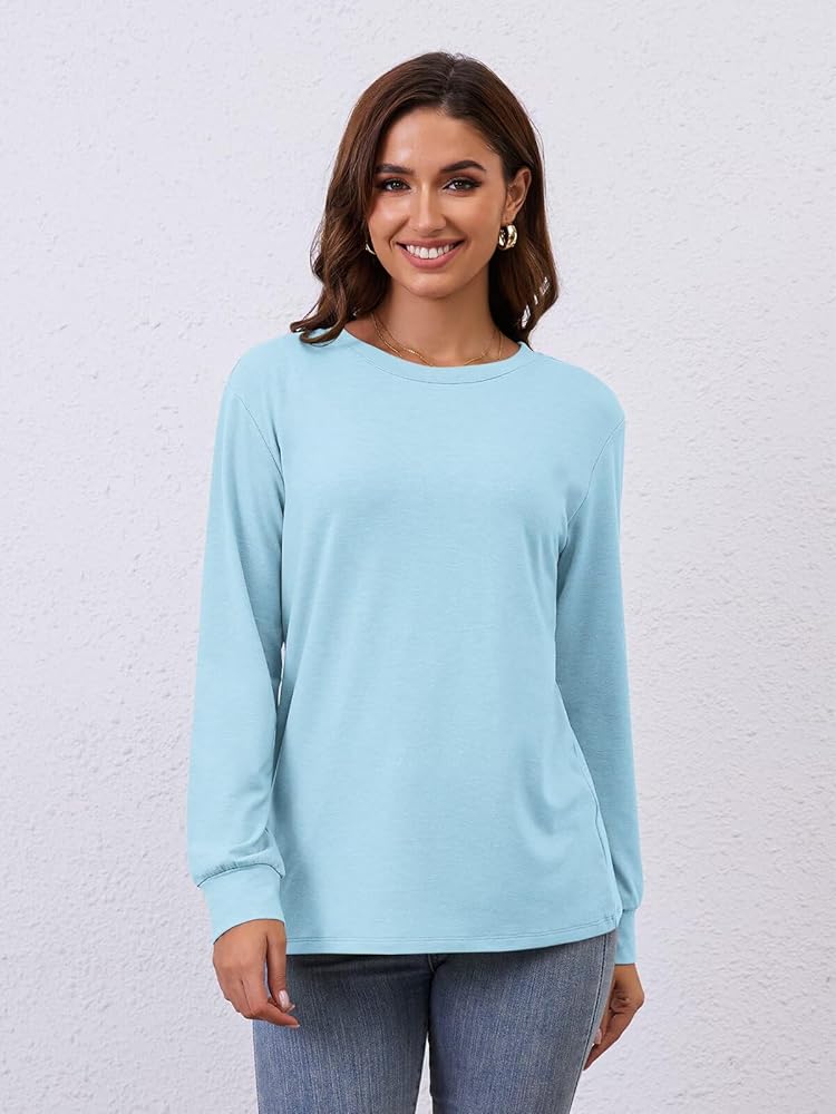 Round Neck Shirts: Long sleeve shirts for women; crew neck tshirts shirts for women; crewneck tops for women; round neck t shirts for women; high neck tees; womens fall outfits