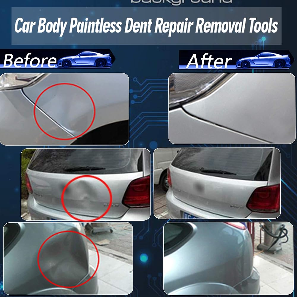 MOST COMPREHENSIVE USING APPLICATION : Completely Paintless Dent Removal, it's environment friendly and will not heart the original painting of your car. Repair the dent sizes from 0.1 inch to 10 inches which caused by hail damage, strike etc, perfectly remove the dent not only for all kinds of cars, but also can be used for repair the dent on Motorcycle, Refrigerators
