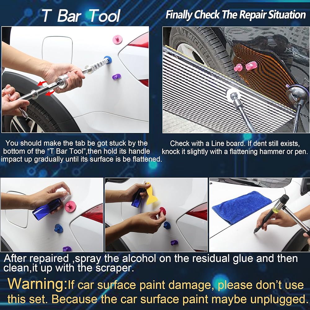 SO EASY TO OPERATE : Tools coming with detailed repair steps introduction for operate, it make the dent removal process so easy. These Car Tools not only good for professional auto repair people using in shop , but also suitable for family people DIY paintless dent repair