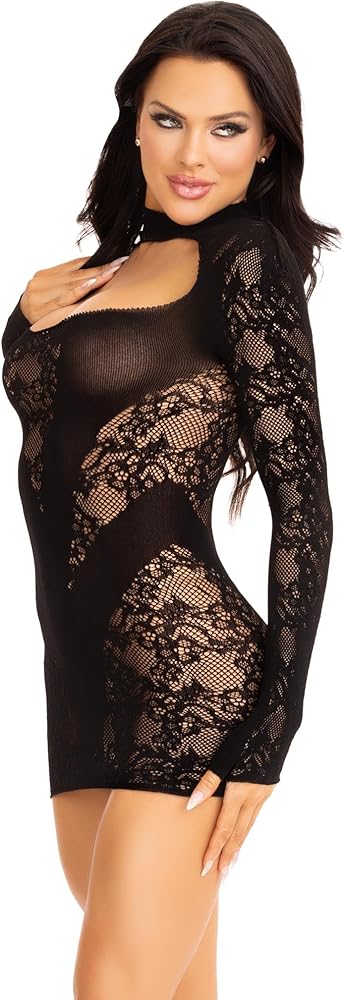 EXUDE GLAMOUR: This mini dress long sleeve look ensures a comfortable fit for an unforgettable night with your partner. The opaque panels add a dramatic look to this womens sexy lingerie dress, which is ideal for a fun romantic night or swimsuit coverup