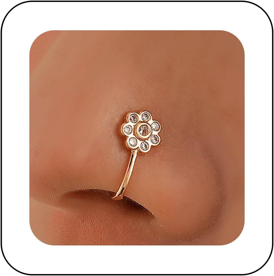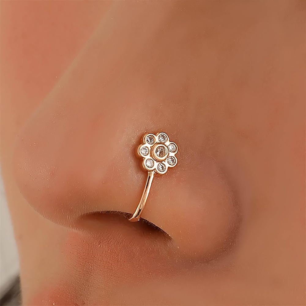 Andelaisi Boho Crystal Flower Clip On Nose Ring Vintage Flower Cuff Hoop Nose Ring Gold CZ Flower Fake Nose Ring Flower Non Pierced Nose Ring Jewelry for Women