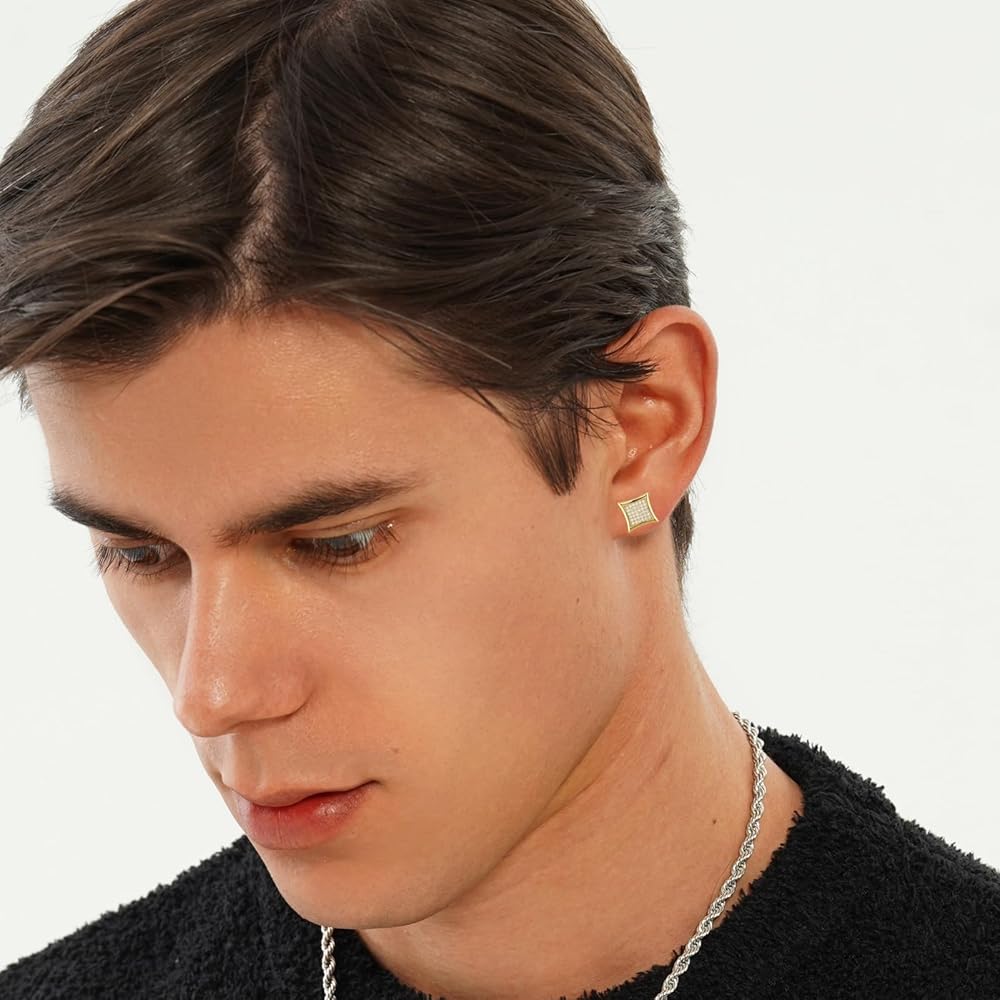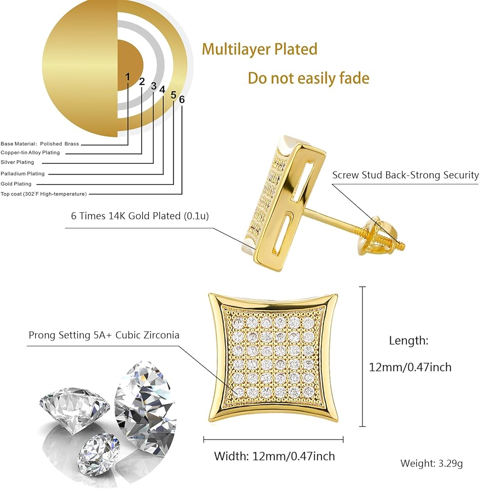 Dimension: The size of the male earrings: is 12mm(0.47 inches)×12mm(0.47 inches). The weight of a pair of square screw stud earrings is 3.29g, suitable for men and women. They are not small, are big square cube screw stud earrings. Lightweight and comfortable