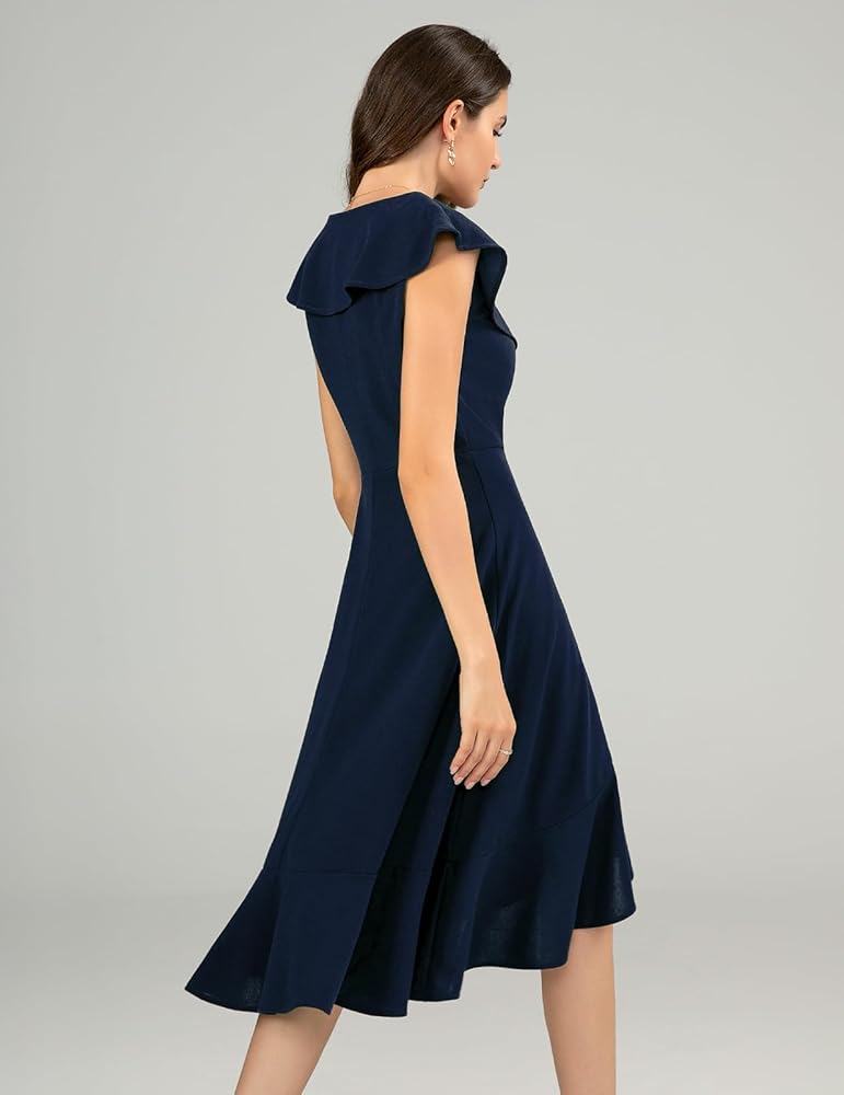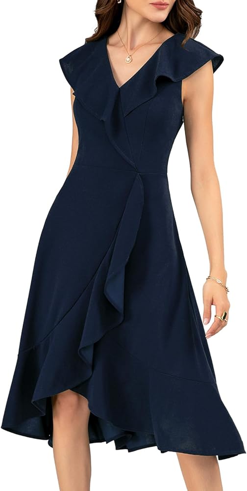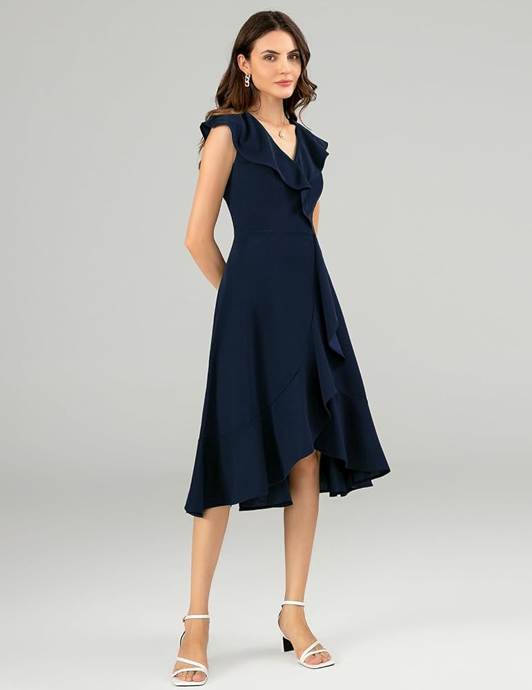 UNIQUE DESIGNS: The elegant party dress with a cute ruffle V-neck accentuates your charming neckline, enhancing your beauty and chic style. The asymmetrical high-low skirt flows gracefully, showing off your beautiful figure and legs