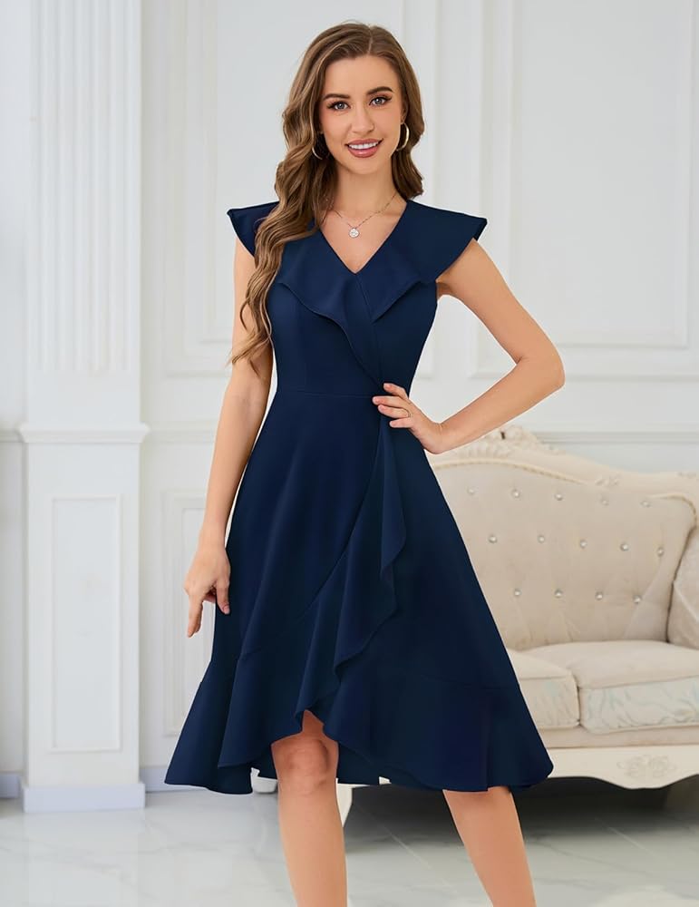 FEATURES: Formal Wedding Guest Dresses for Women/ Short Sleeve Prom Dress/ Irregular High Low Dress/ Ruffled V-Neck Dress/ High Waist Dresses/ Swing Party Dress/ Classic A-Line Gaduation Dress/ Casual Tea Length Dresses/ Homecoming Dresses for Teens