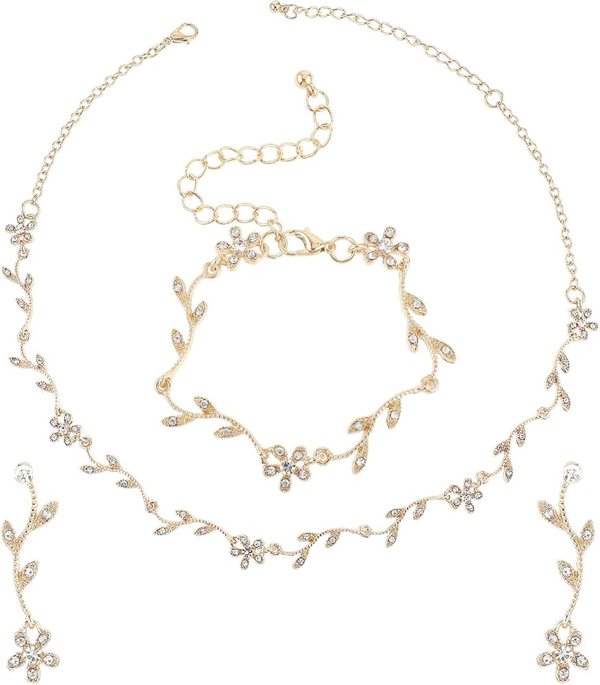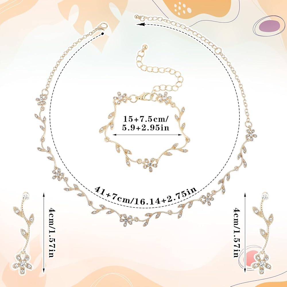 Exquisite Design: Our necklace earrings bracelet set is designed in the shape of flowers and leaf, an unexpected sense of design, exudes romance and sophistication, this special design is born to match the clothes and your unique beauty