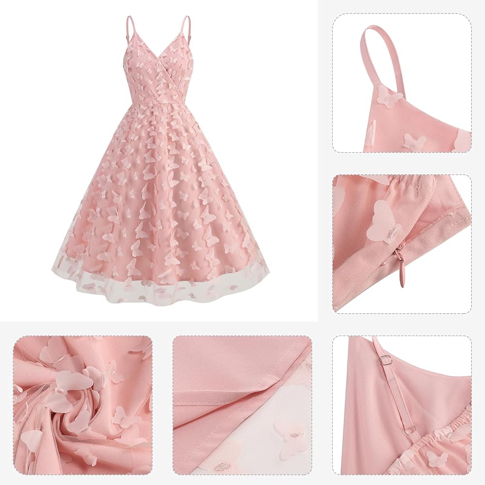 Sheer mesh butterfly dress for women formal flower dress sleeveless adjustable spaghetti strap dresses for women mesh floral embroidered dress vintage dress evening party gown, womens tulle prom dresses wrap v neck 3d butterfly spaghetti straps cocktail dress. 3D butterfly applique dress women tulle butterfly dress women short prom dress floral dress for women flower dress, 3d butterfly tulle prom dress butterfly tulle dress floral embroidery dress , 3d flower prom dress for women
