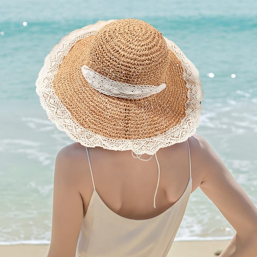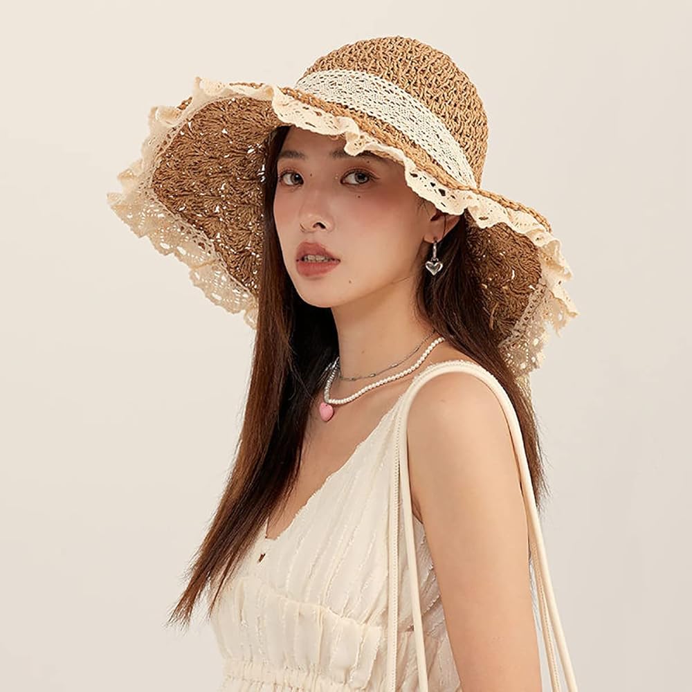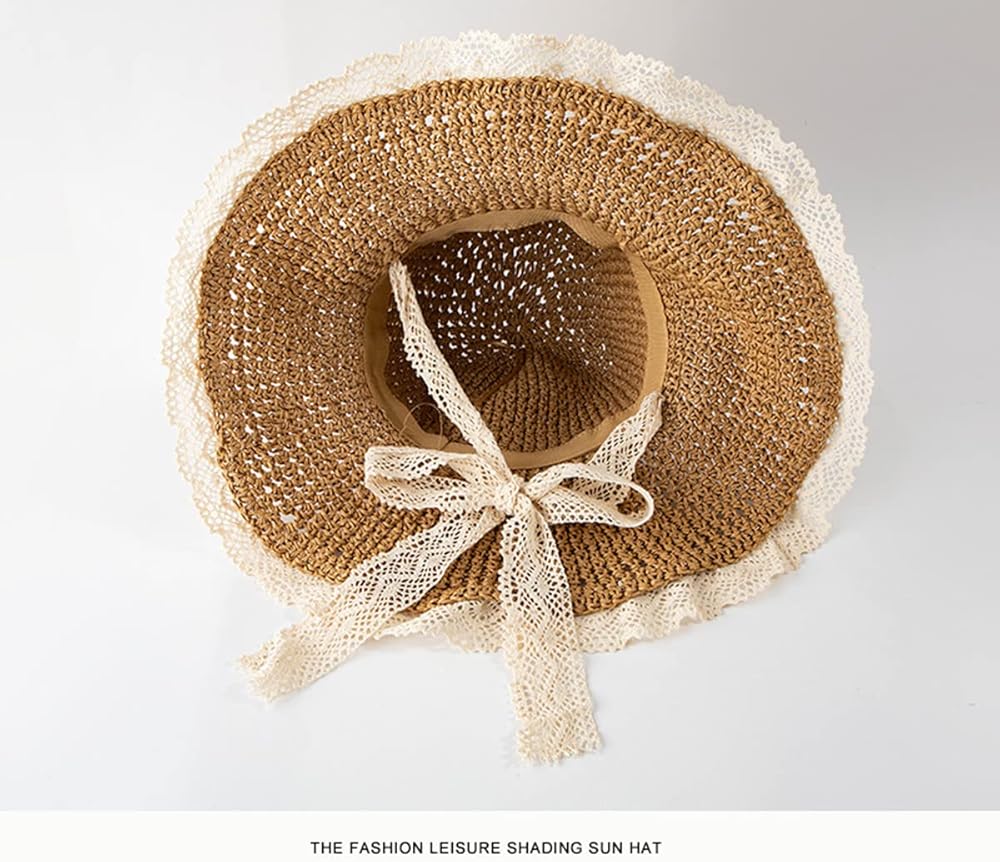 ---Exquisite lace wide brim, quality straw hat which can help to block out sunlight, keeps your head cozy and cool in summer
