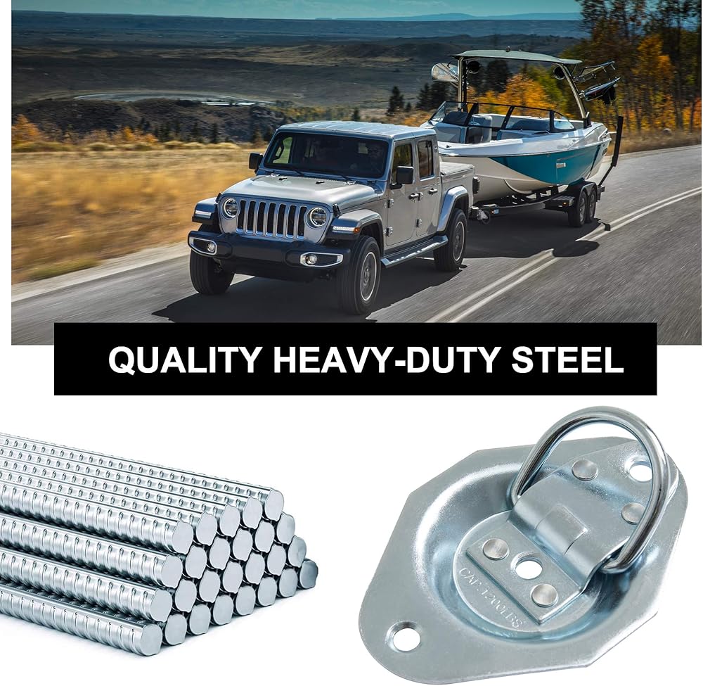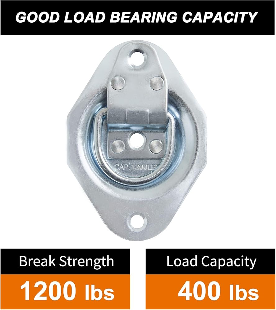 Lonffery Round Recessed D-Ring Tie Down Anchors (1,200 lb. Capacity), Heavy Duty Kit for Trailer or Deliveries