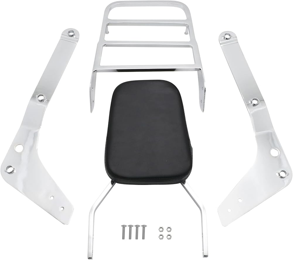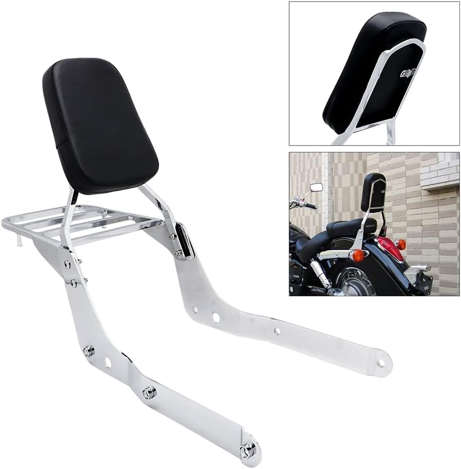Passenger Backrest Sissy Bar With Comfortable Pad And Luggage Rack Compatible With Honda Shadow Aero 750 VT750C 2004-2022 (Chrome)