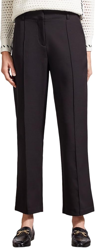Refine your work wardrobe with our wide-leg trousers, meticulously crafted from flowy suiting fabric that drapes effortlessly. Featuring a hook and bar closure, a 30" inseam, and functional slash pockets at the waist, they exude both style and practicality. Adding a touch of sophistication, a decorative welt pocket adorns the back. Complete with front leg pin tucks running from hip to hem, these trousers flatter your figure by creating an elongated silhouette.