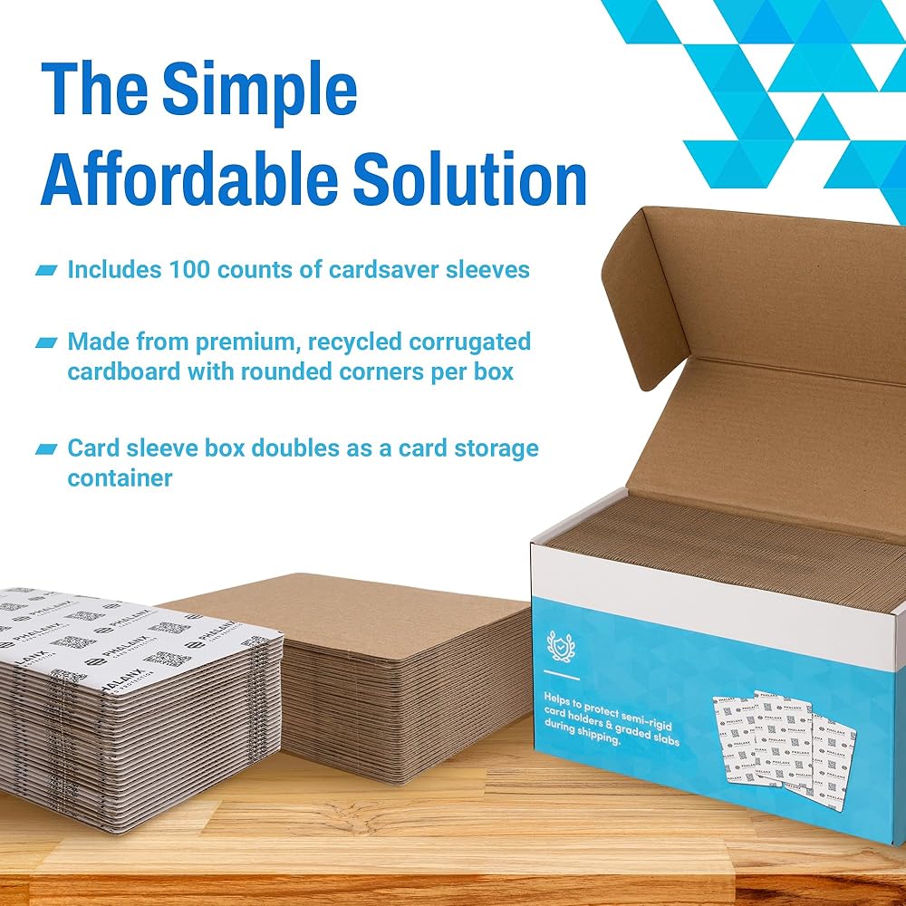 سهلة الاستخدام - يمكنك الحصول على 100 قطعة من مستلزمات شحن بطاقات التداول/الرياضة المتدرجة المصنوعة من الورق المقوى المموج الفاخر المعاد تدويره بزوايا مستديرة لكل صندوق. لاستخدامها، ضع بطاقة بين قطعتين من الورق المقوى. قم بتأمين كل جانب من واقي البطاقة من الورق المقوى بقطعة من الشريط.